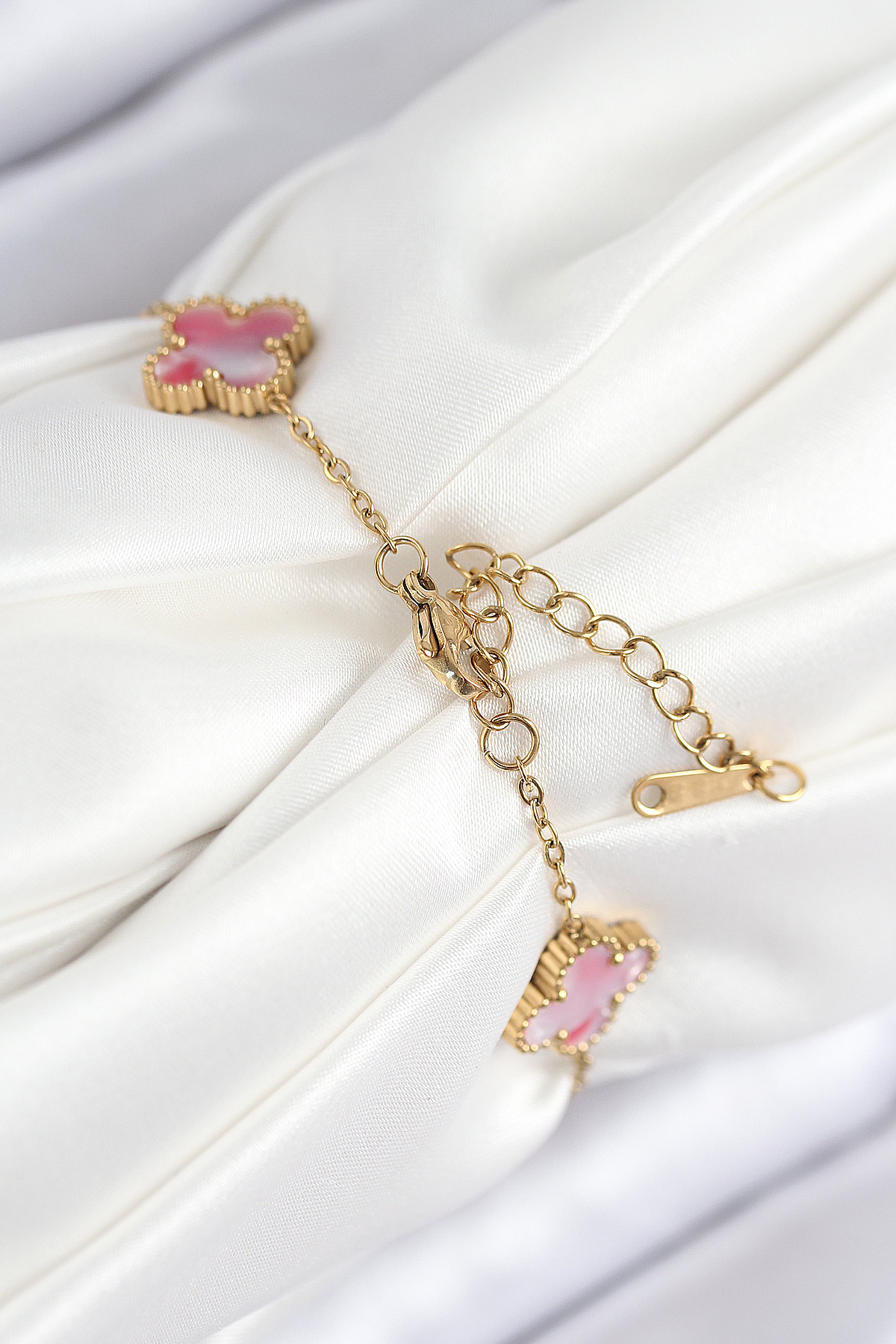 316l Steel Pearlescent Pink Gold Color Clover Women Bracelet