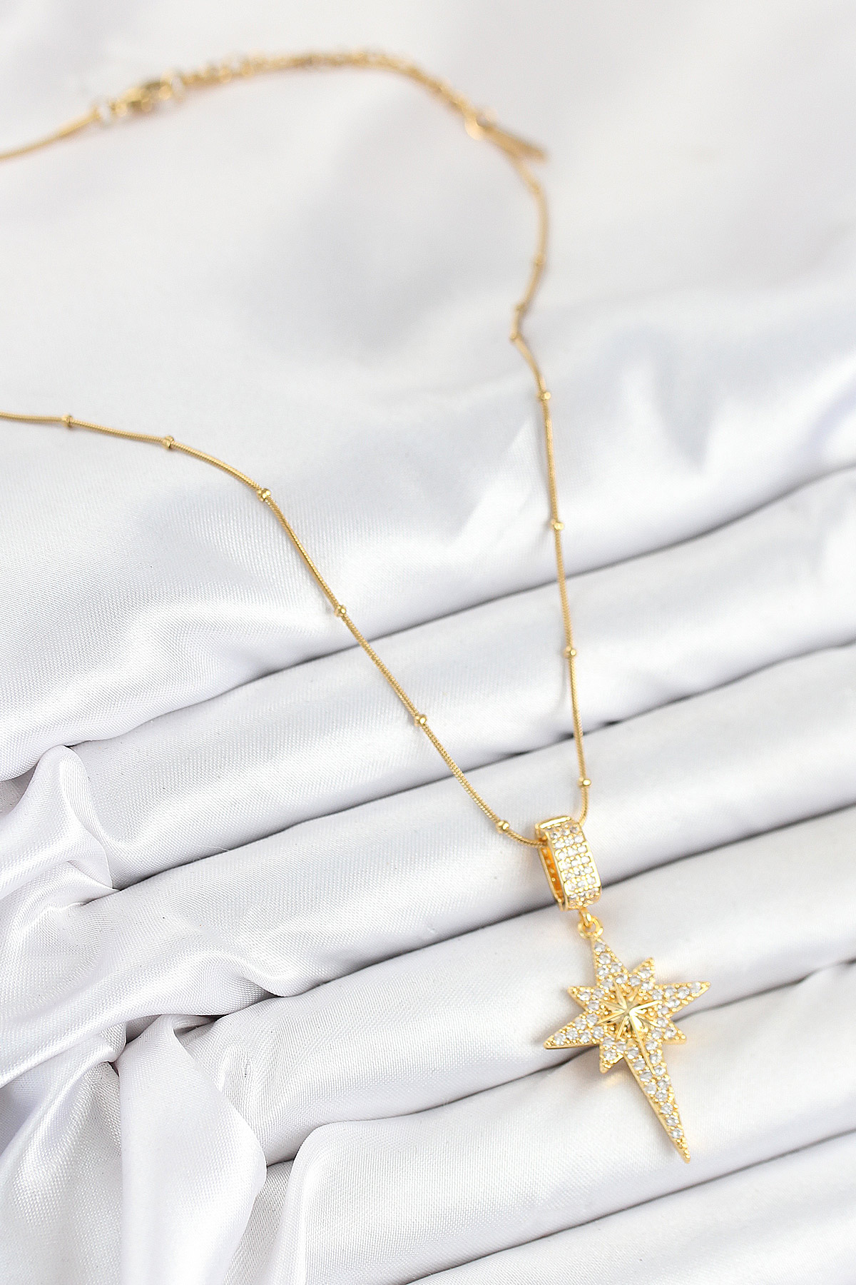 316l Steel Zircon Stone Pole Star Model Gold Color Women Necklace