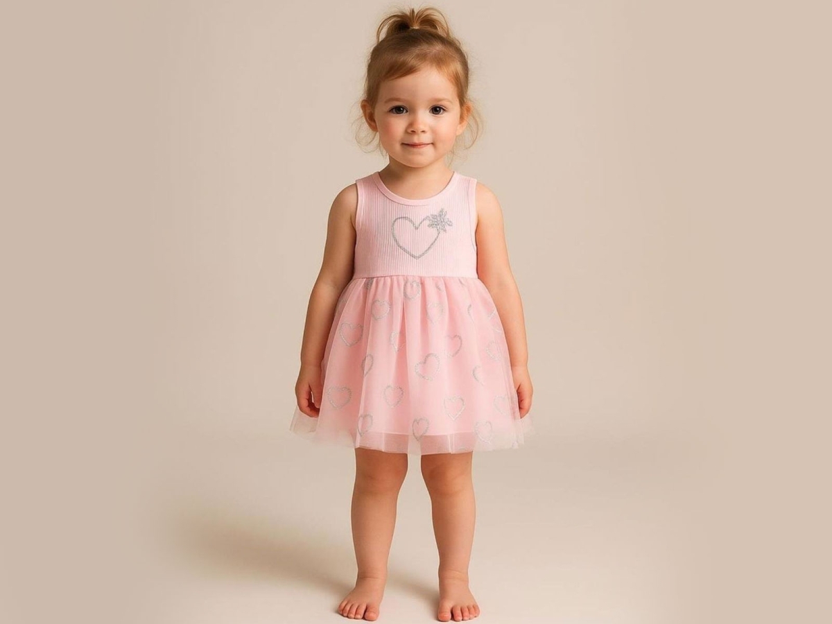 Baby Rompers and Overalls - B1 - Baby Dress with Glittering Heart Print