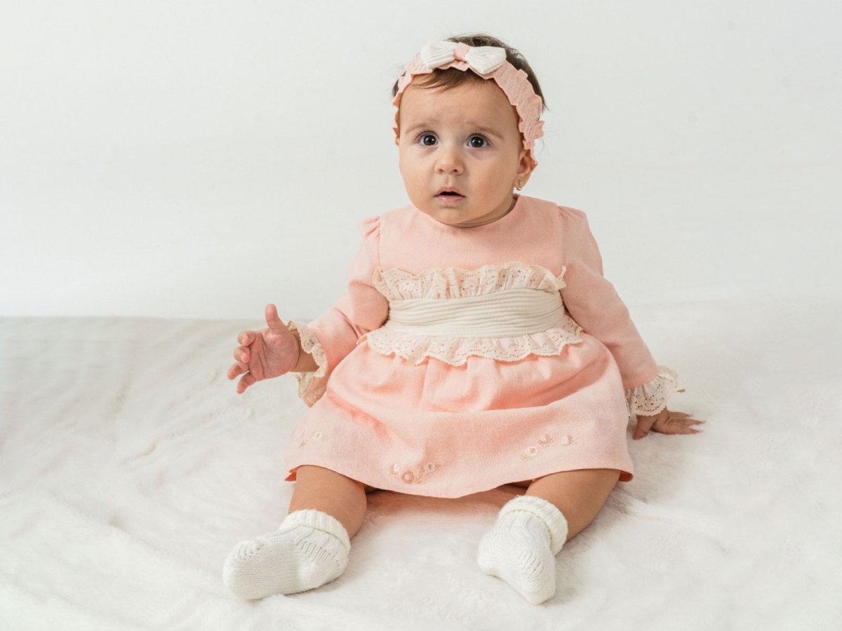 Baby Rompers and Overalls - B1 - Baby Dress with Lace Details