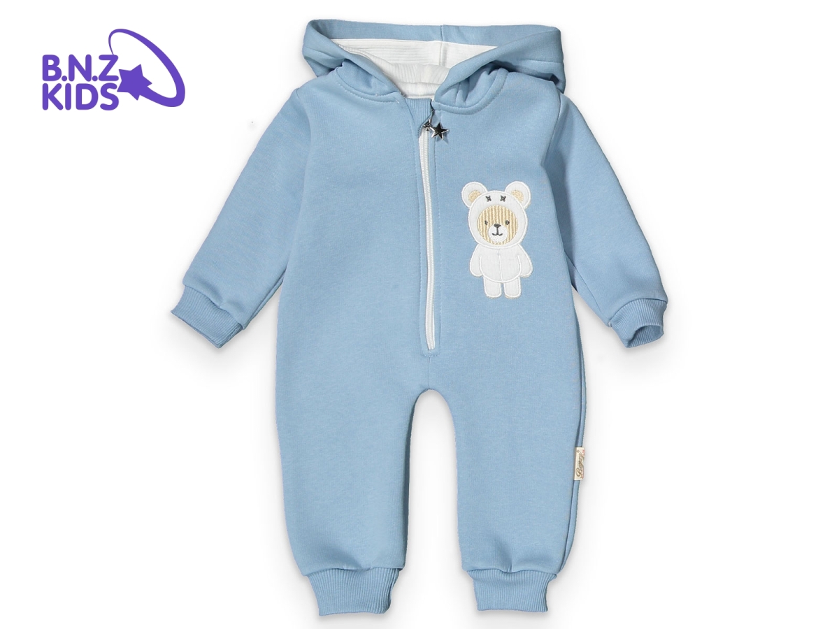 Baby Rompers and Overalls - B1 - Bear Embroidered Boys' Fleece Lined 3-Thread Jumpsuit