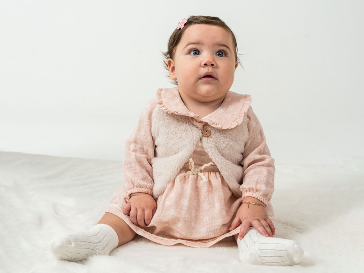 Baby Rompers and Overalls - B1 - Dress with Plush Vest