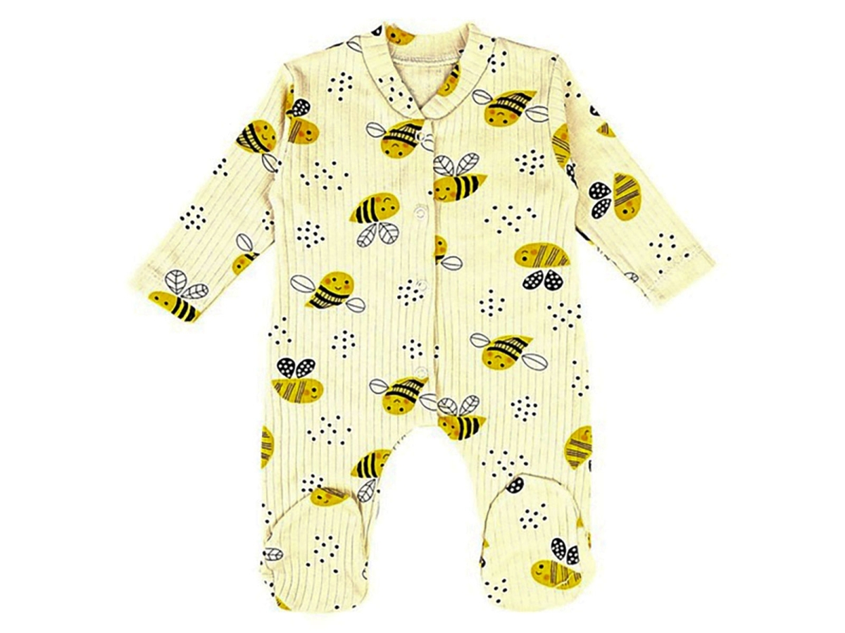 Baby Rompers and Overalls - B1 - Girl Baby Romper with Bee Pattern and Footies