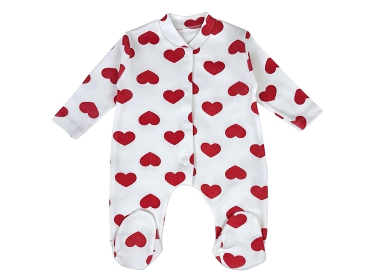 Baby Rompers and Overalls - B1 - Girl's Footed Pajamas with Heart Pattern