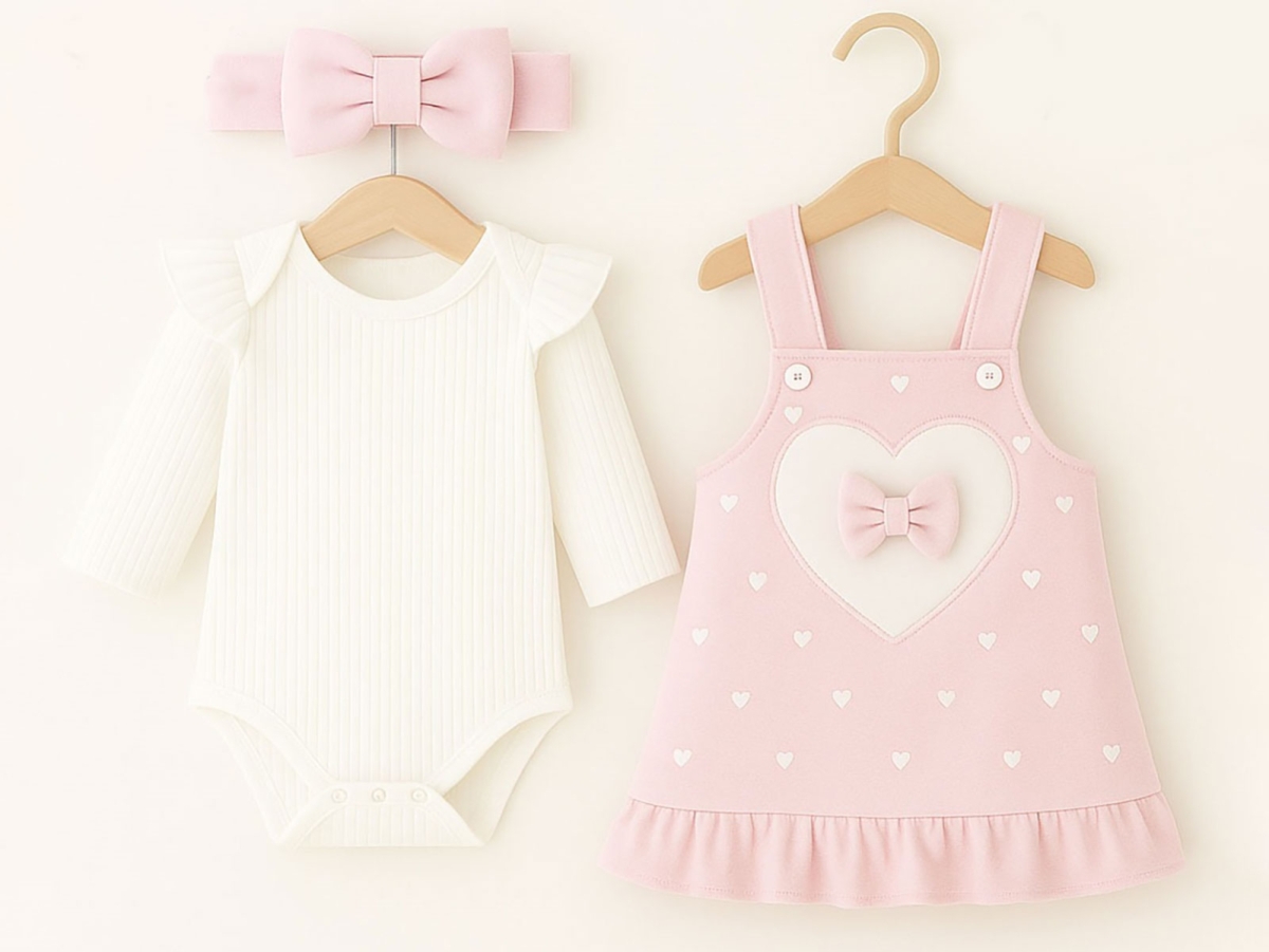 Baby Rompers and Overalls - B1 - Heart Patterned Two-Piece Jumper Set