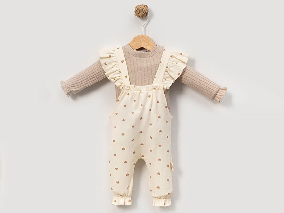 Baby Rompers and Overalls - B1 - Heart Patterned Two-Piece Overalls Set