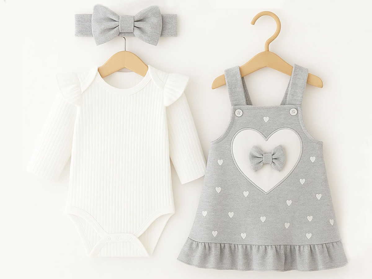 Baby Rompers and Overalls - B1 - Heart Patterned Two-Piece Pinafore Set