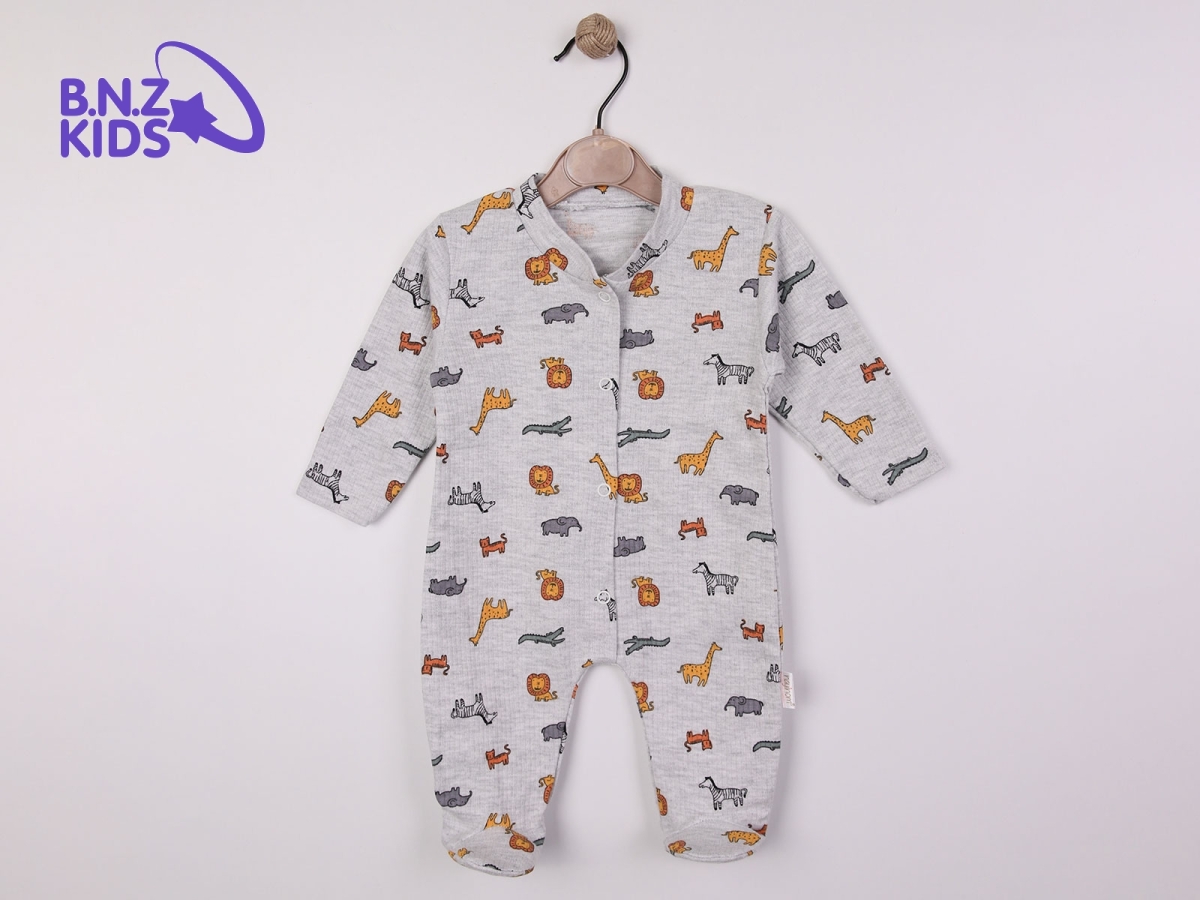 Baby Rompers and Overalls - B1 - Safari Patterned Footed Boys' Baby Jumpsuit