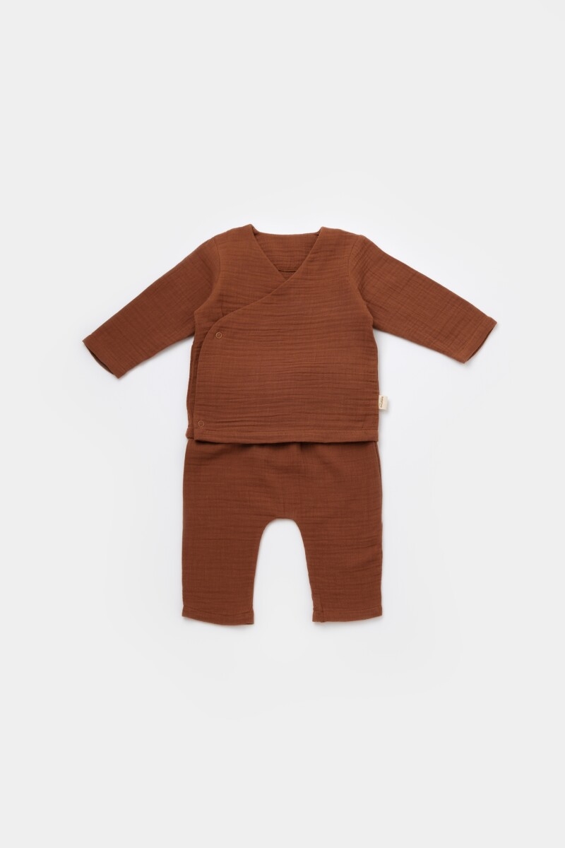 Baby Rompers and Overalls - Wholesale Baby Muslin Crossover Long Sleeve T-shirt Pants Set Baby Cosy 2022-CSYM7013