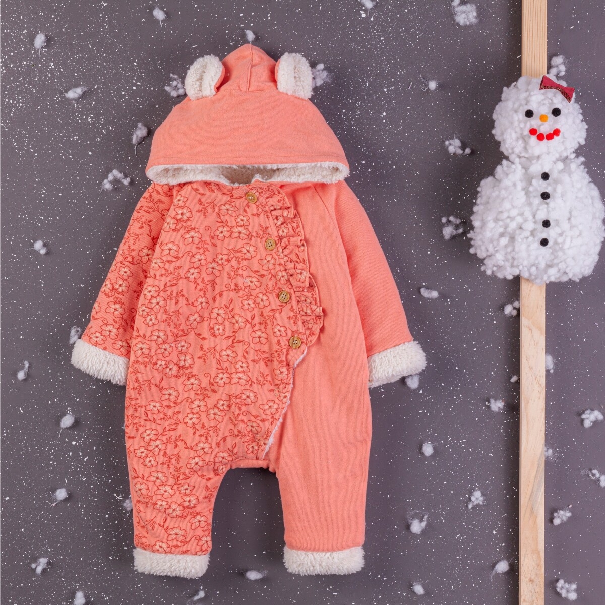 Baby Rompers and Overalls - Wholesale Girls' Welsoft Hooded Romper 3-12M 1097-5412