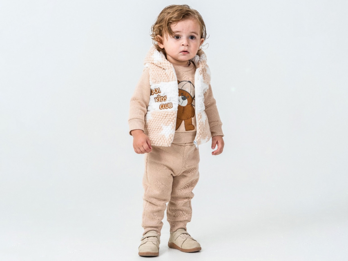 Baby Sets - B1 - Bear Embroidered Boys' Baby Set 3-Thread Brushed