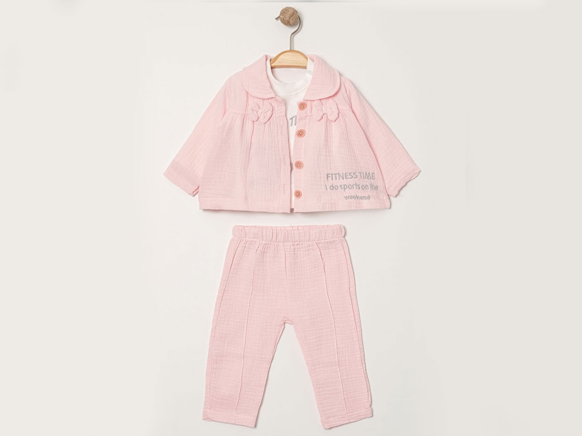 Baby Sets - B1 - Bow Detail Jacket Three-Piece Girl Baby Set
