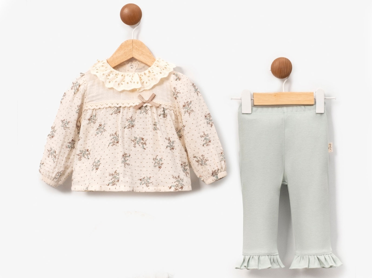 Baby Sets - B1 - Floral Pattern Lace Collar Muslin Girl Baby Set