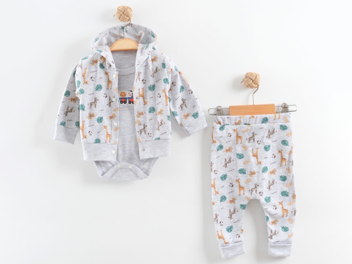 Baby Sets - B1 - Giraffe Patterned Cardigan Three-Piece Boys' Baby Set