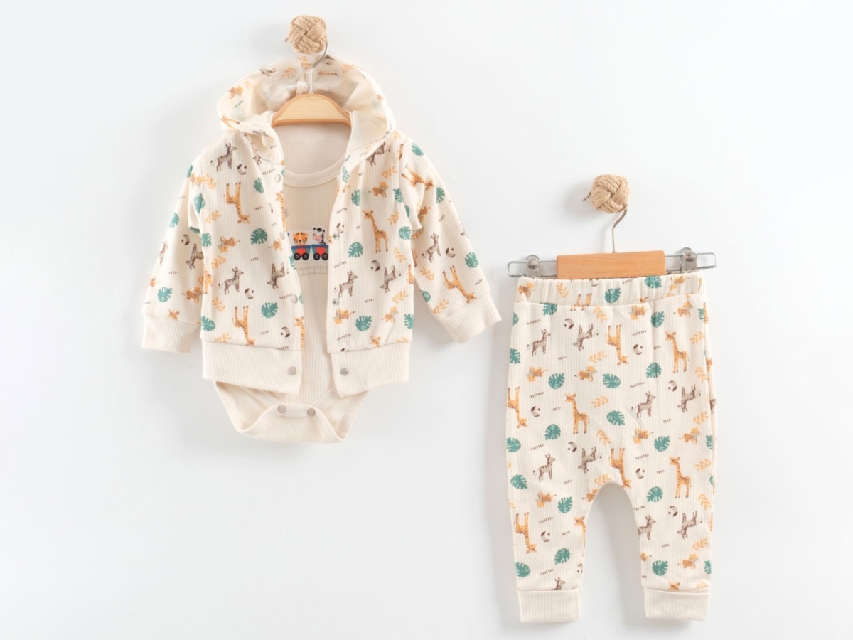 Baby Sets - B1 - Giraffe Patterned Cardigan Three-Piece Boys' Baby Set