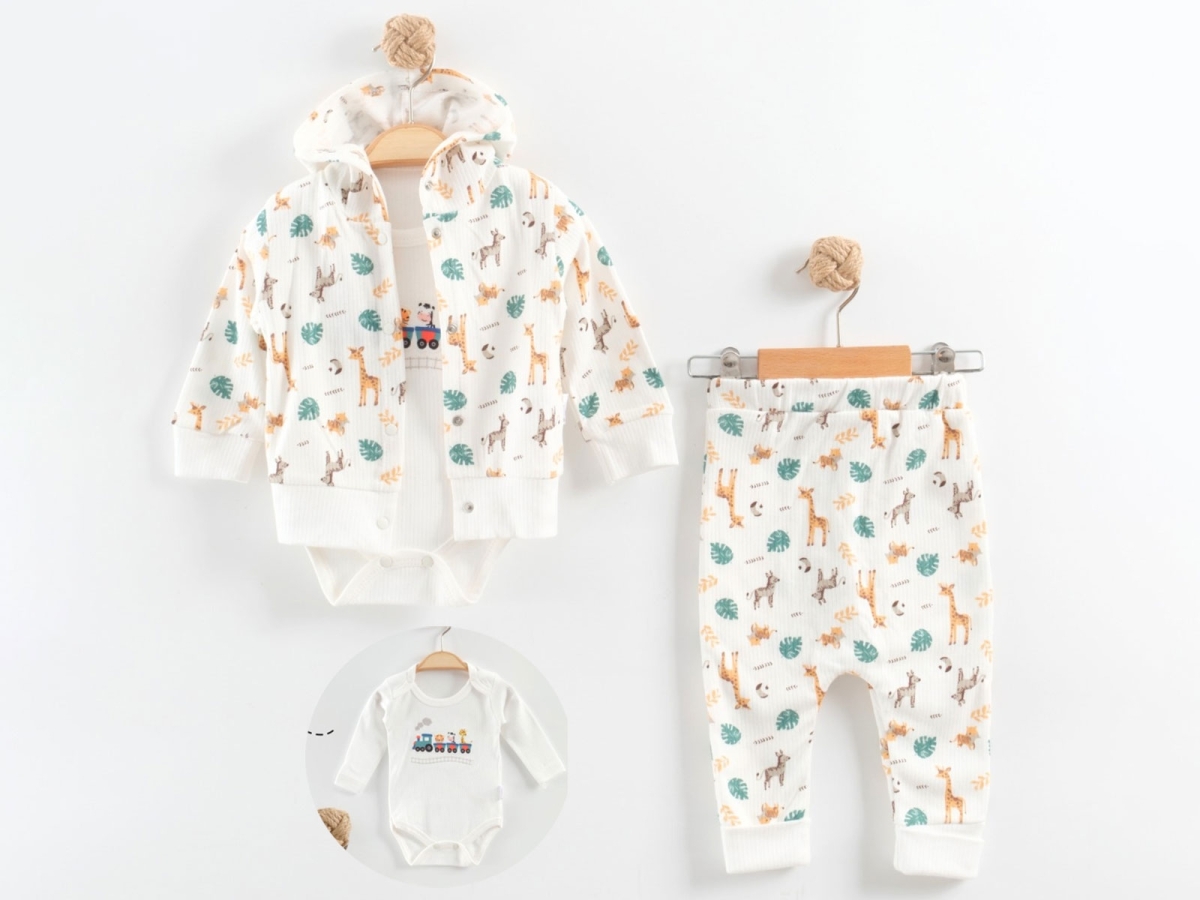 Baby Sets - B1 - Giraffe Patterned Cardigan Three-Piece Boys' Baby Set