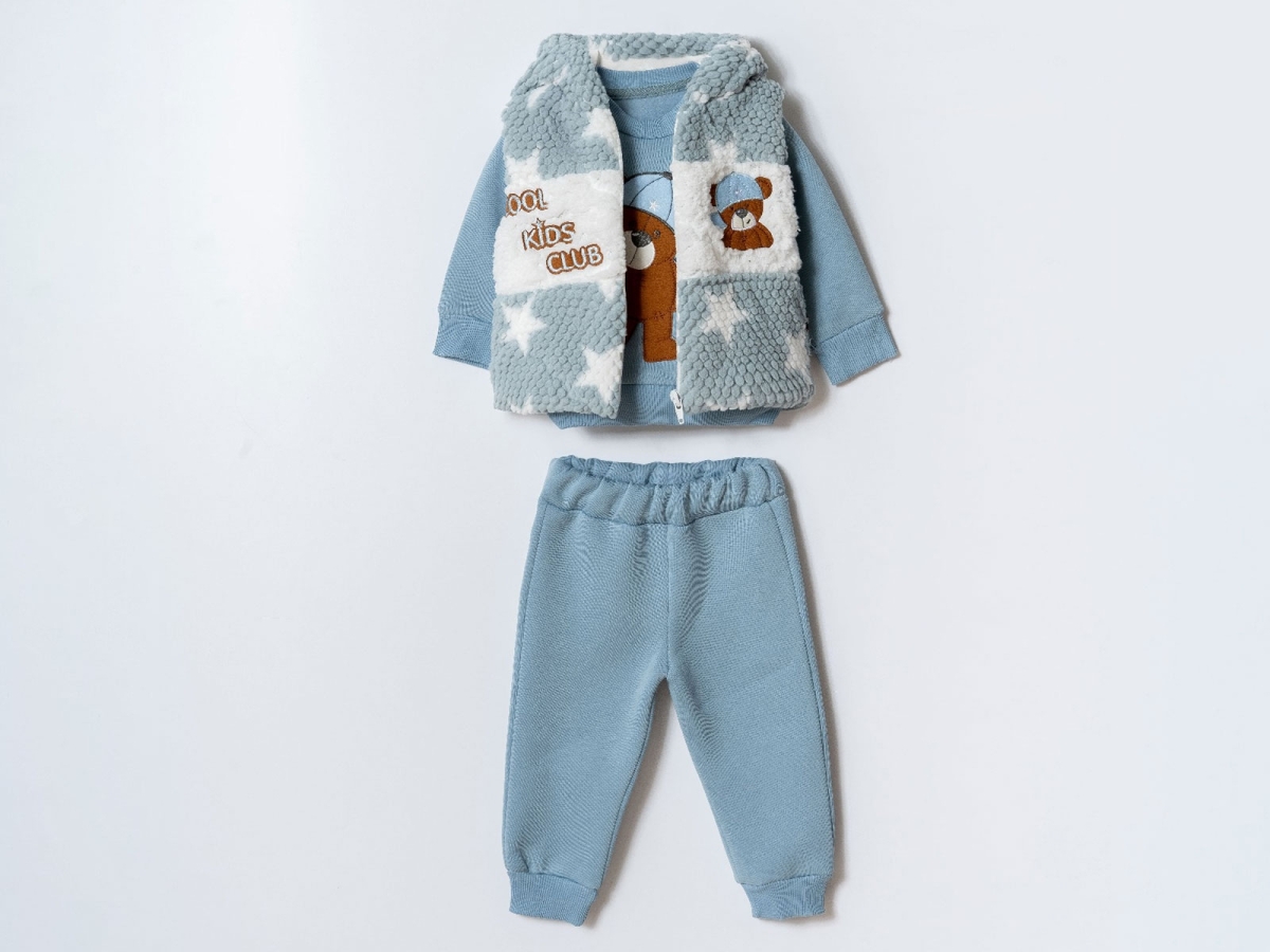 Baby Sets - B1 - Teddy Bear Embroidered Boys' Baby Set 3-Thread Brushed