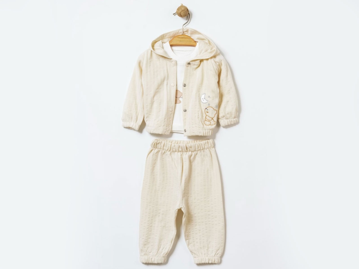 Baby Sets - B1 - Teddy Bear Embroidered Three-Piece Girl Baby Set