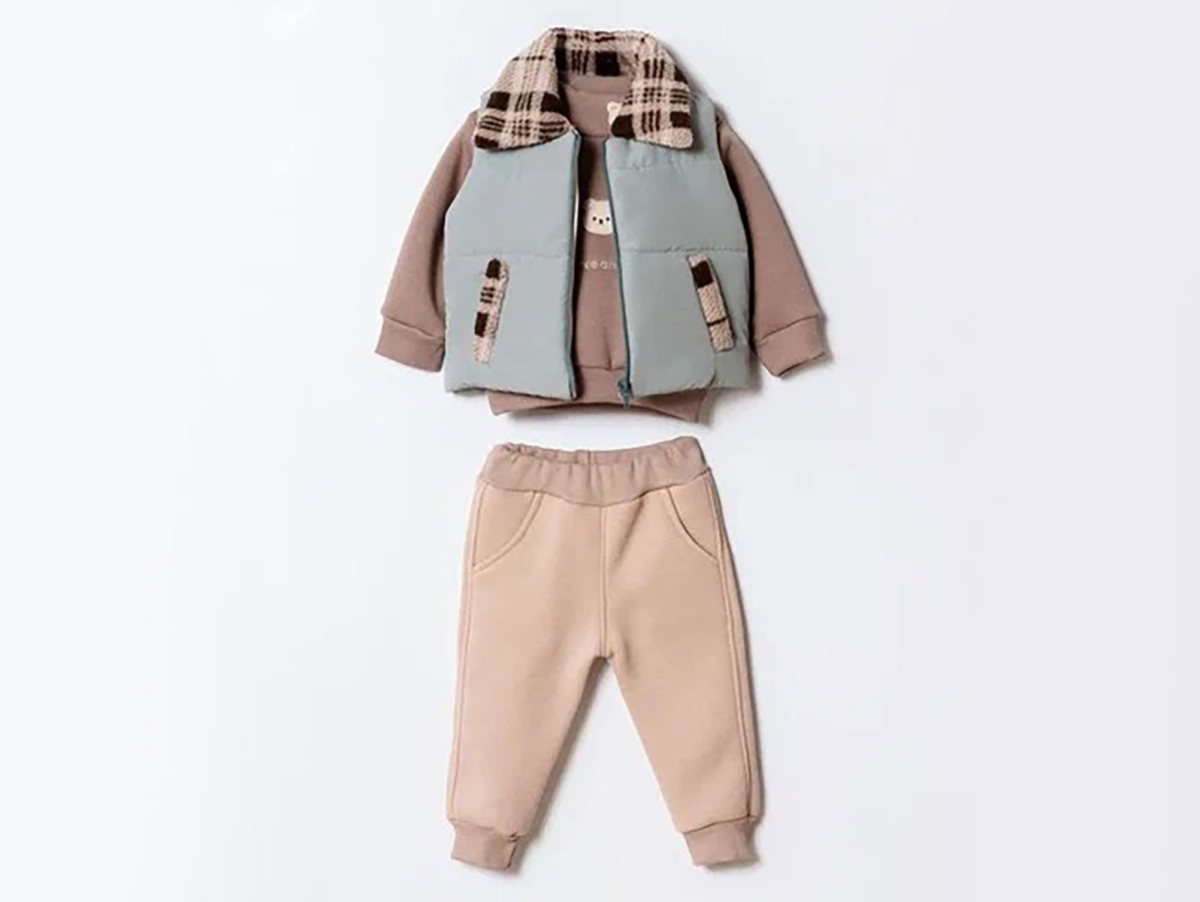 Baby Sets - B1 - Teddy Bear Embroidered Vest Three-Piece Boy Baby Set