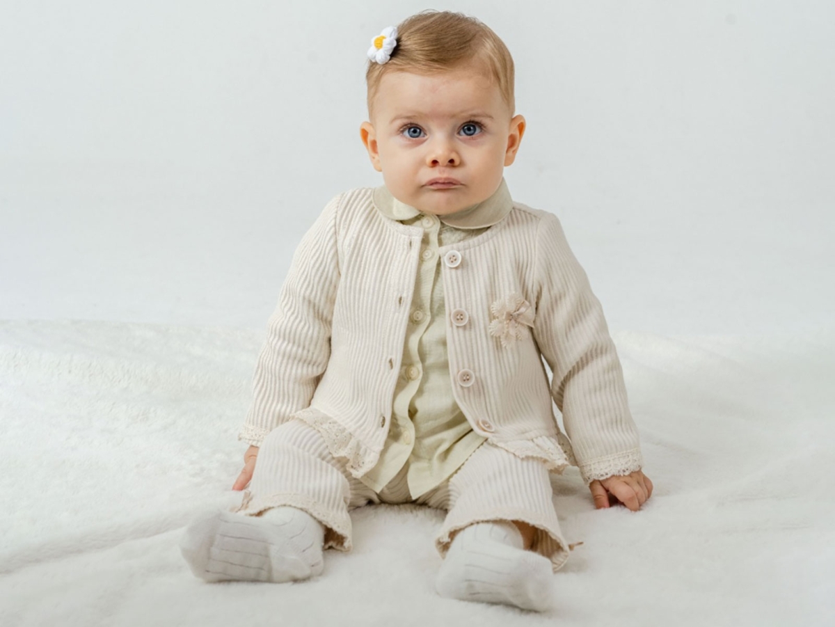Baby Sets - B1 - Three-Piece Girl Baby Set with Lace Detail Cardigan