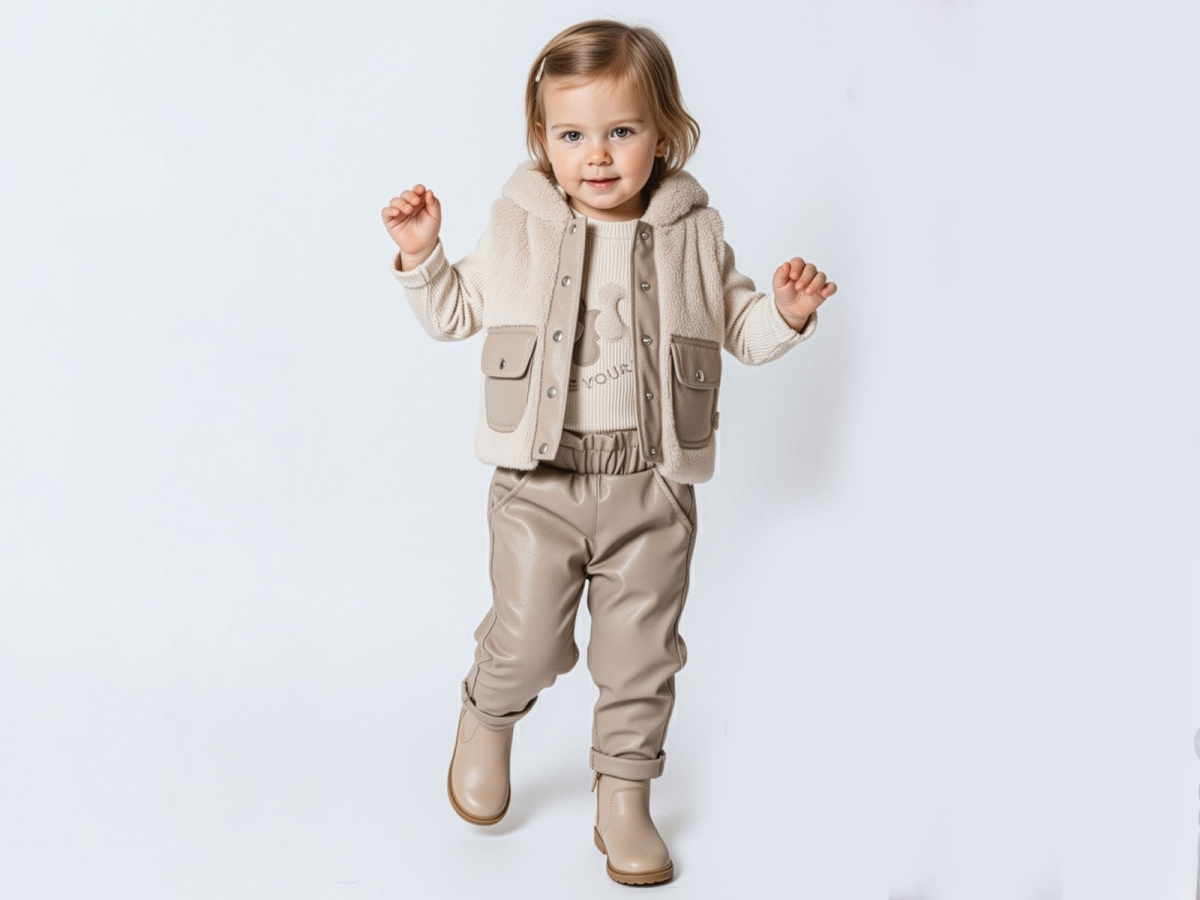 Baby Sets - B1 - Three-piece Girl Baby Set with Plush Vest and Pocket, 3-thread Brushed Cotton