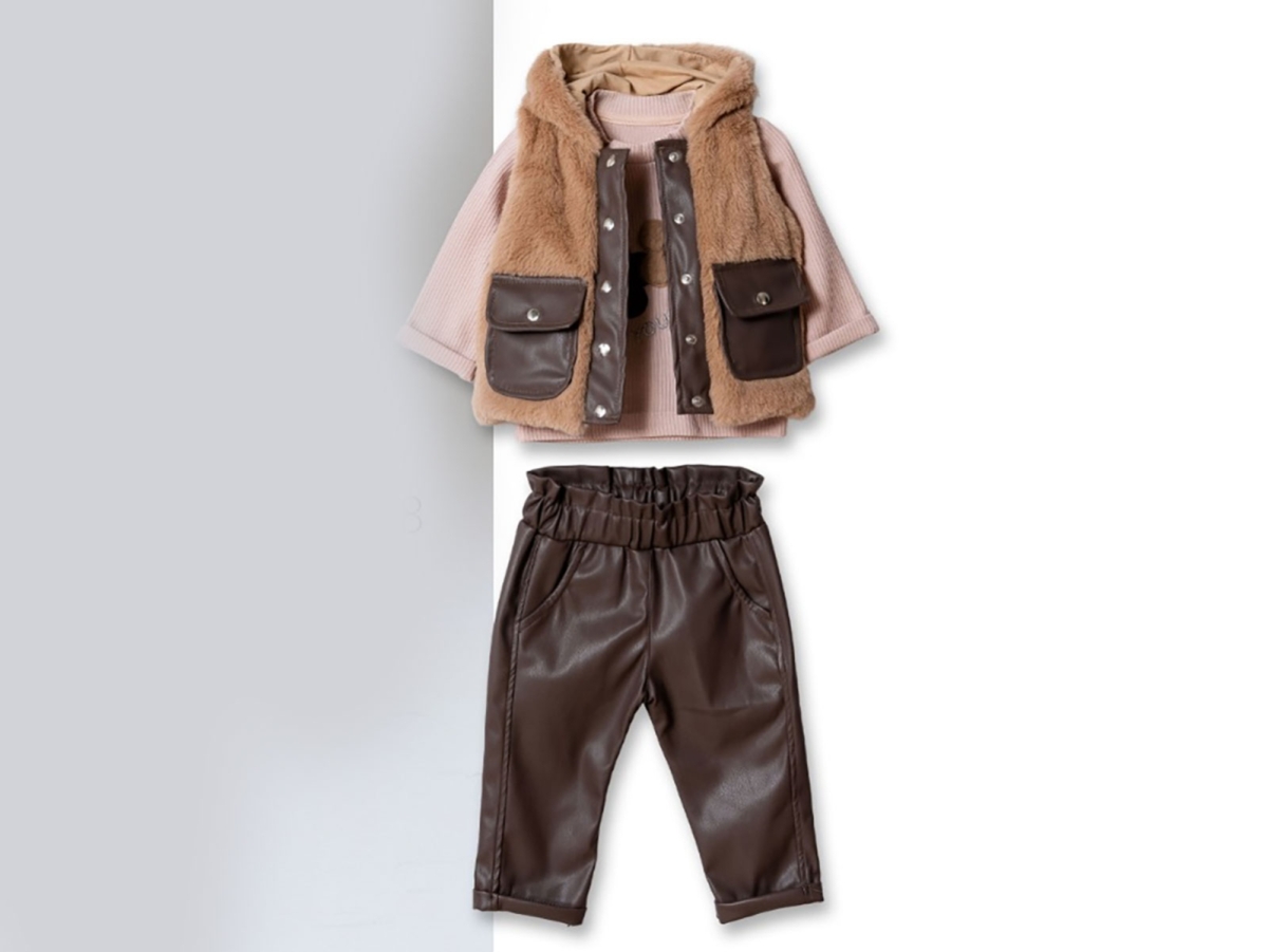 Baby Sets - B1 - Three-piece Girl Baby Set with Pocket Plush Vest 3-thread Brushed