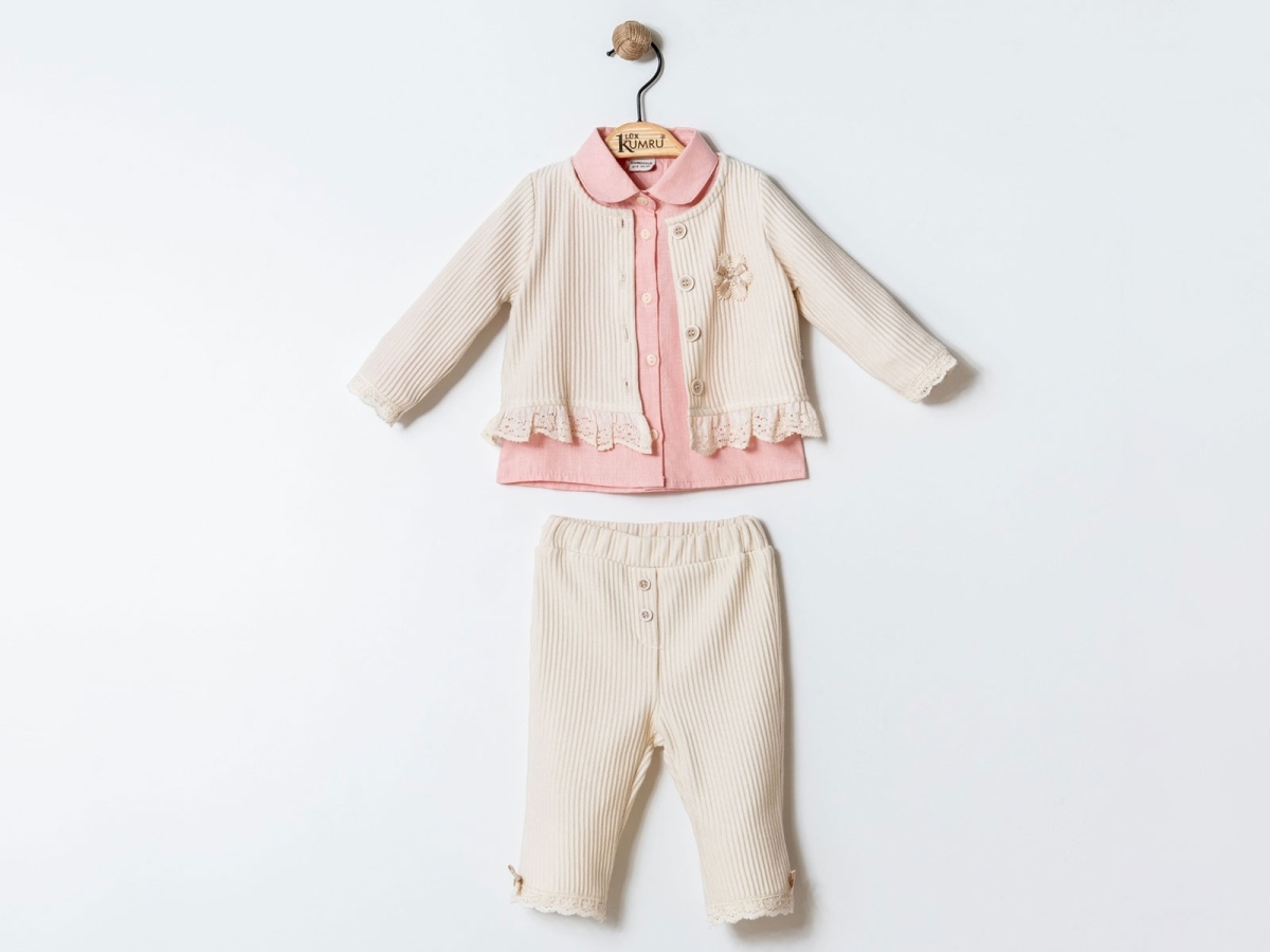 Baby Sets - B1 - Three-Piece Girls' Baby Set with Cardigan and Lace Detail