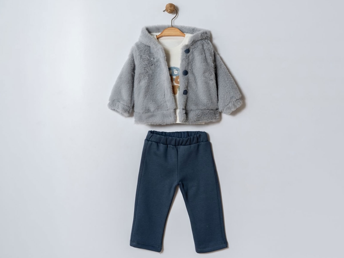 Baby Sets - B1 - Three-Piece Plush Cardigan Set for Boys with Car Embroidery
