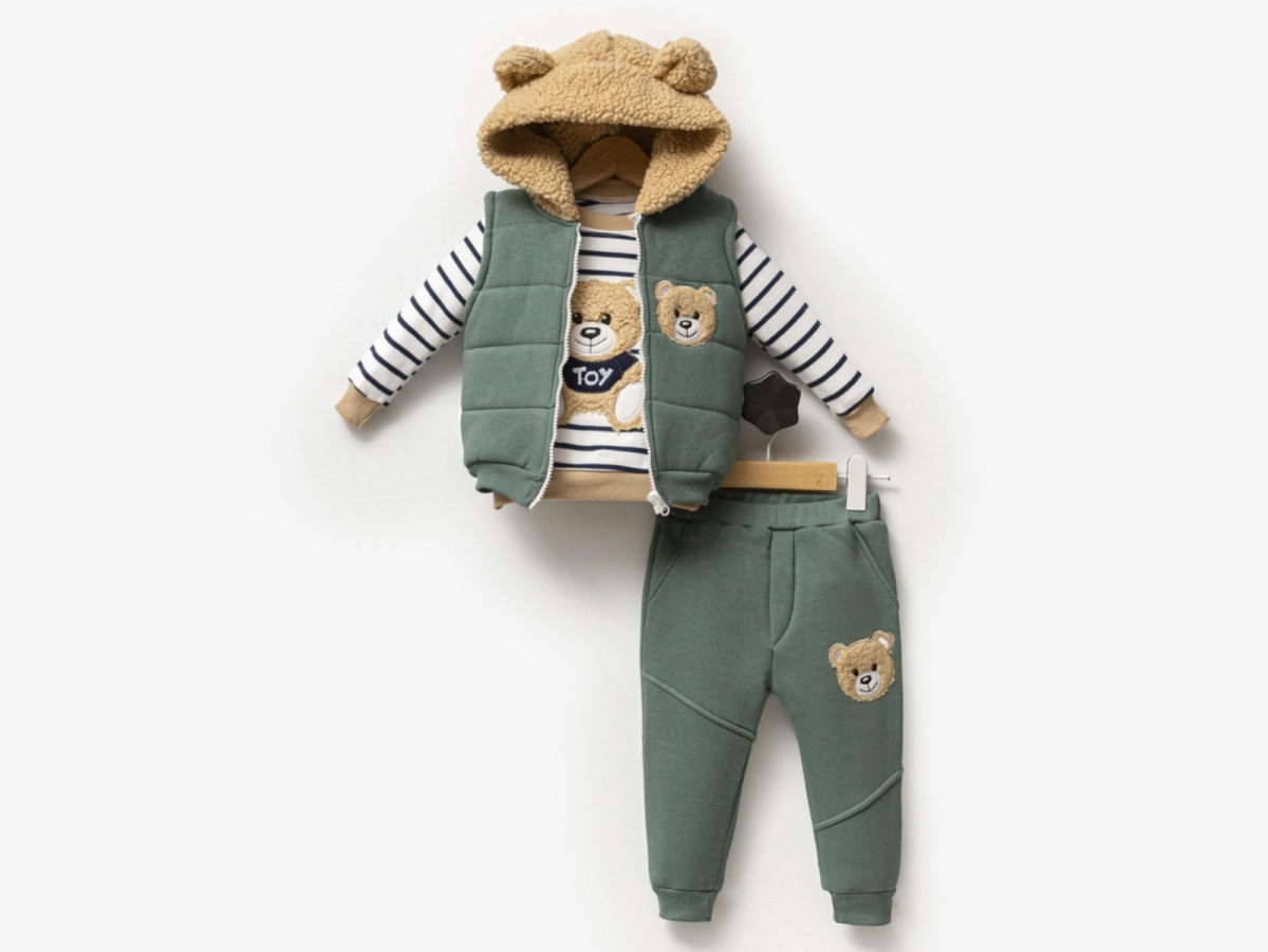 Baby Sets - B1 - Three-Piece Unisex Set with Bear Embroidery Vest