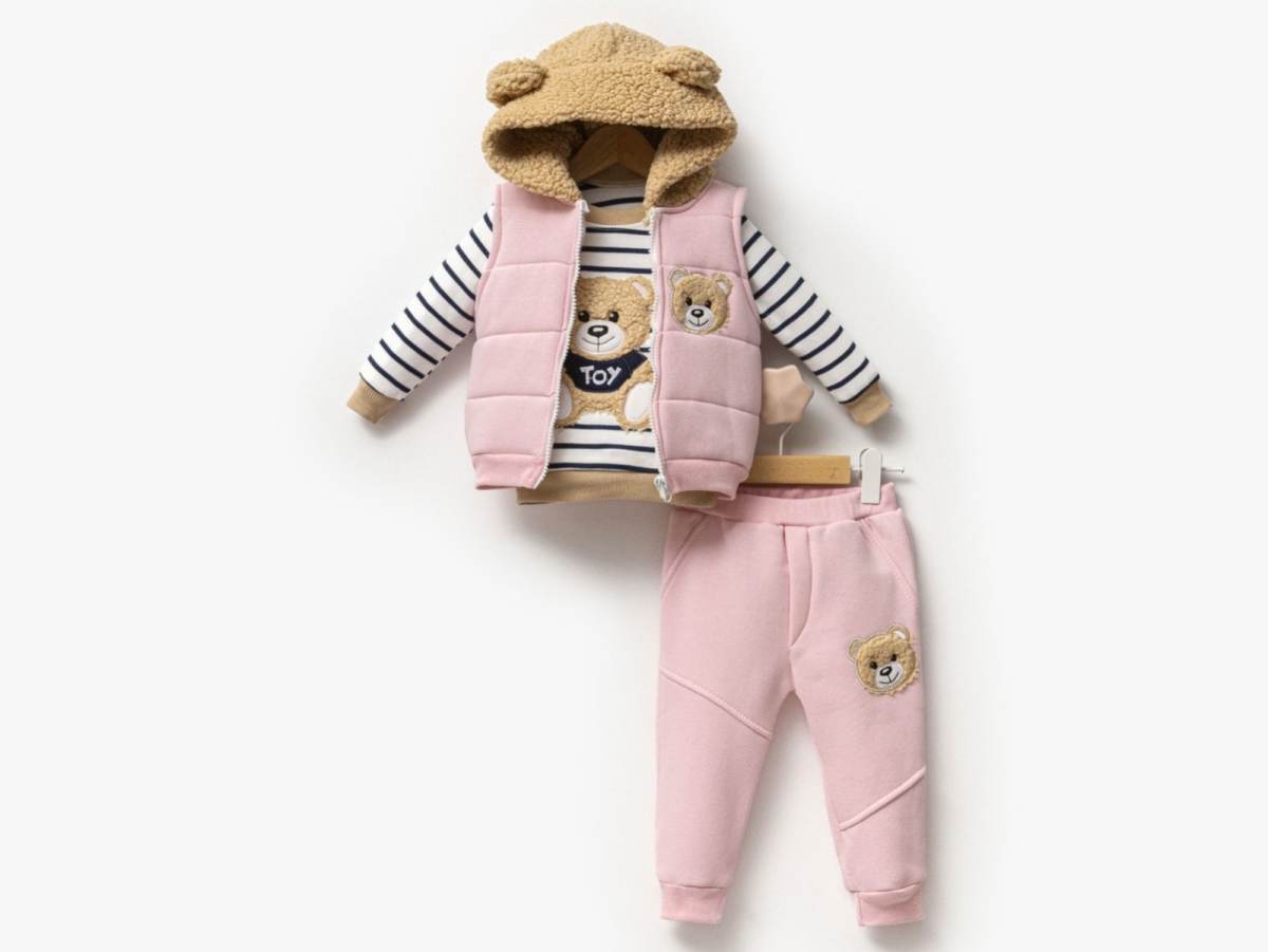 Baby Sets - B1 - Three-piece Unisex Set with Teddy Bear Embroidery Vest