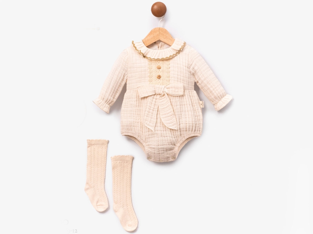 Baby Tops - B1 - Bow Detailed Girl's Muslin Snap Bodysuit