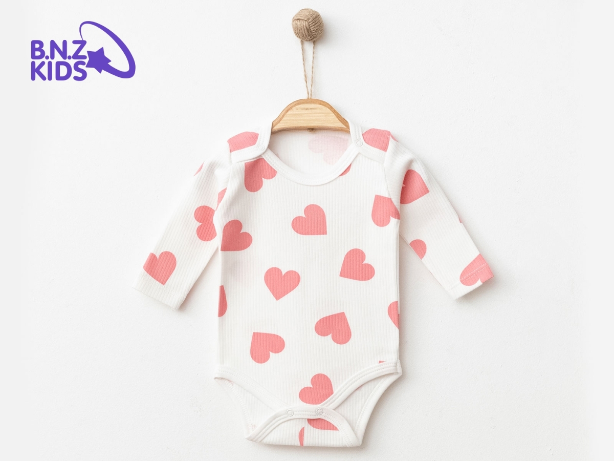 Baby Tops - B1 - Girl's Bodysuit with Heart Pattern and Snaps