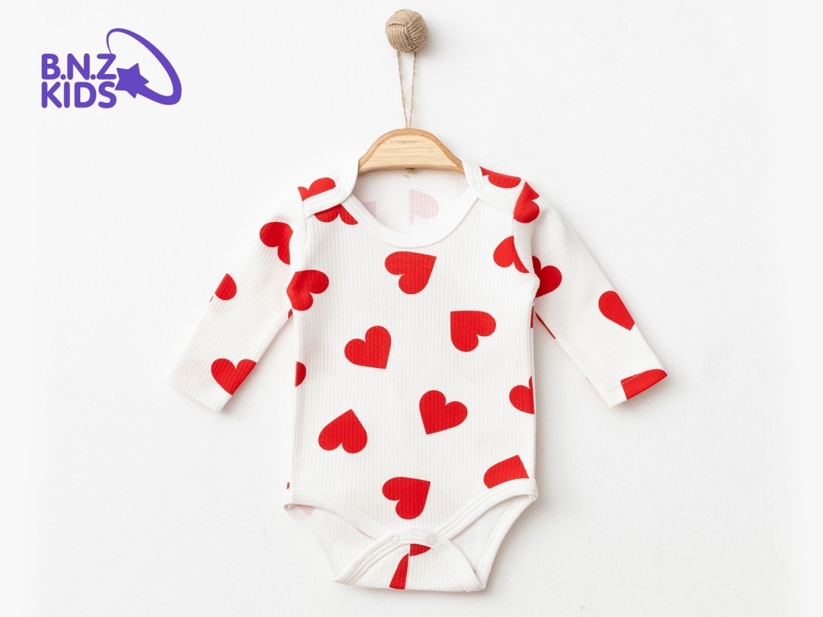 Baby Tops - B1 - Girl's Bodysuit with Heart Print and Snap Closures