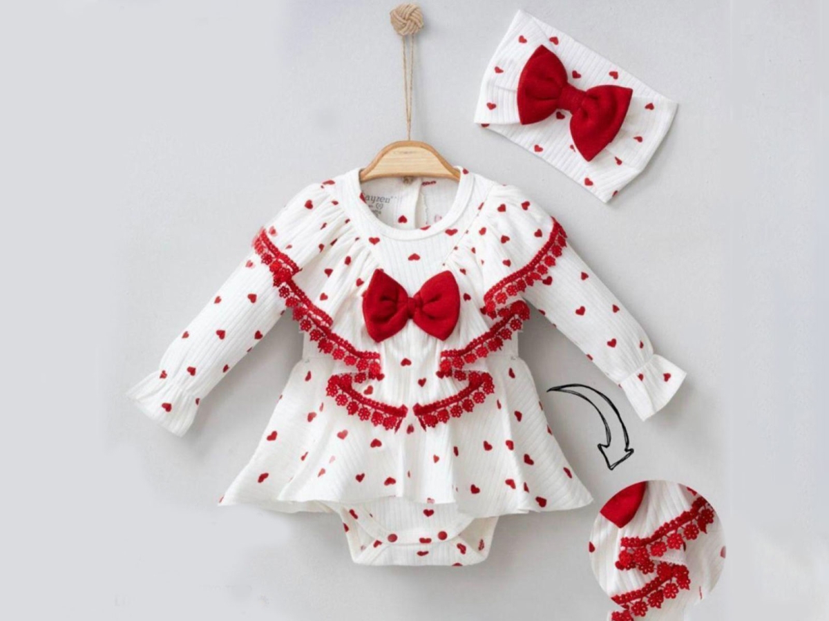 Baby Tops - B1 - Heart Patterned Baby Girl Bodysuit