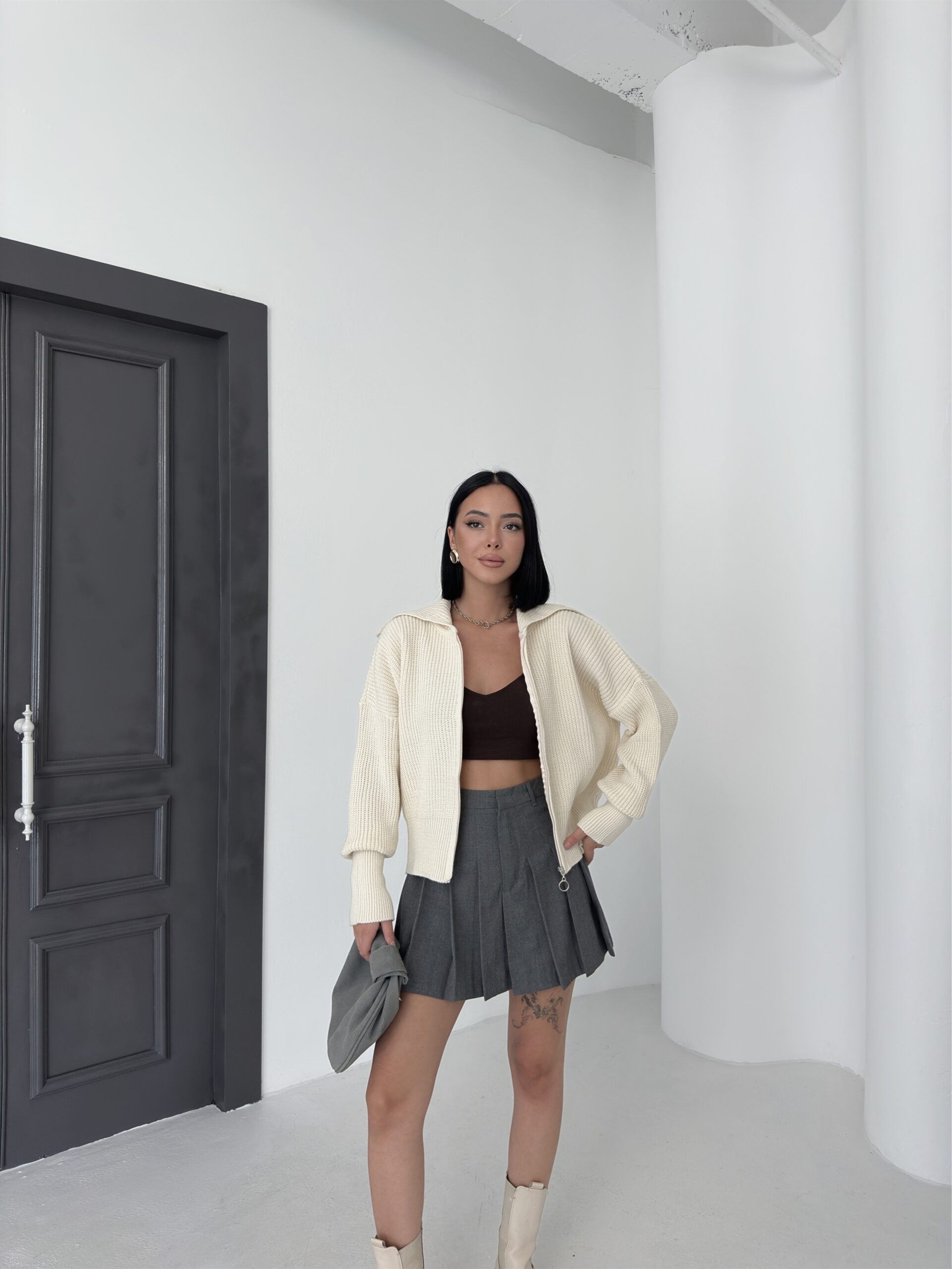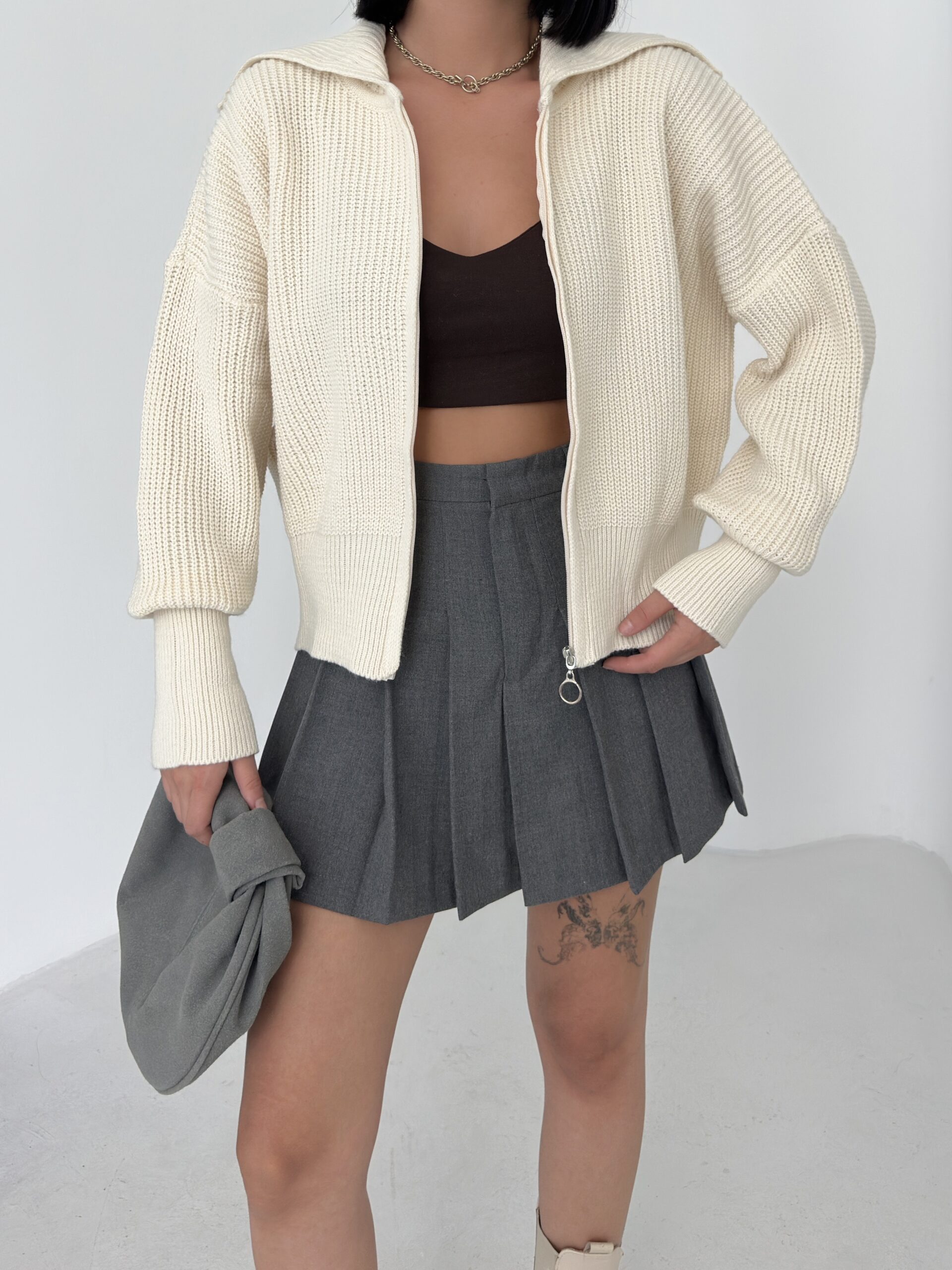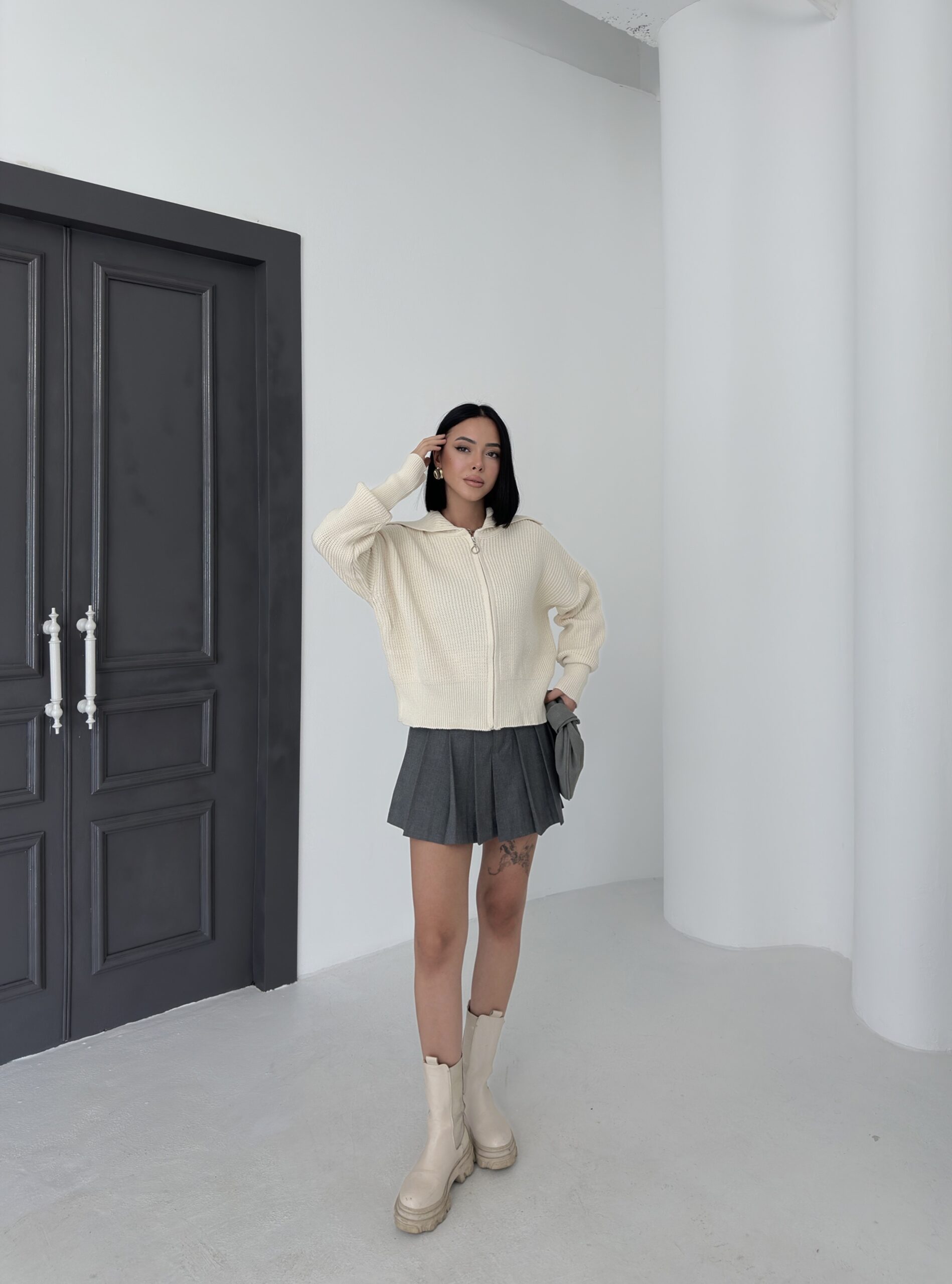Beige Sweater With Hooded Neck And Oversized Fit