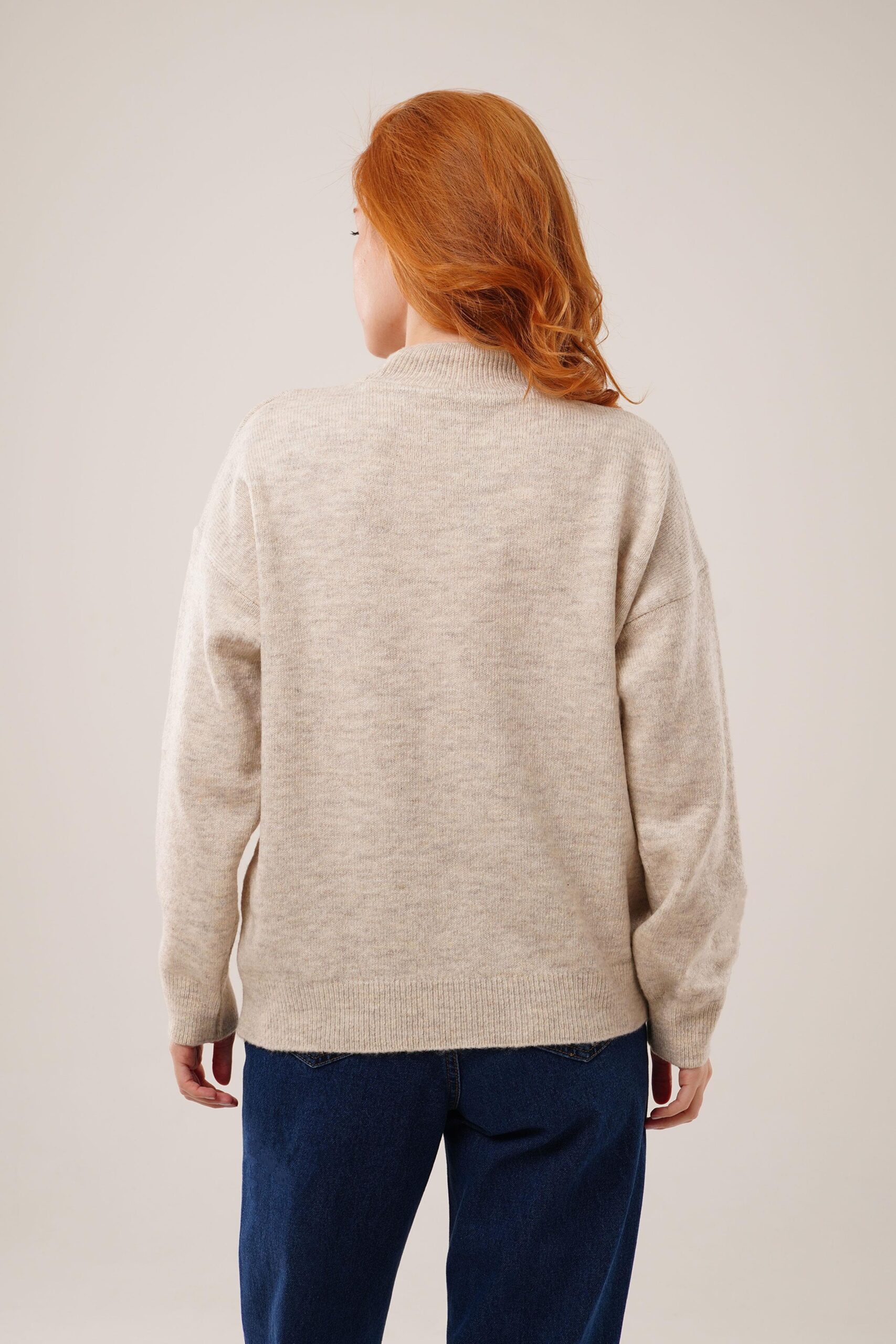 Beige Sweater With Oversized Fit And Polo Neck