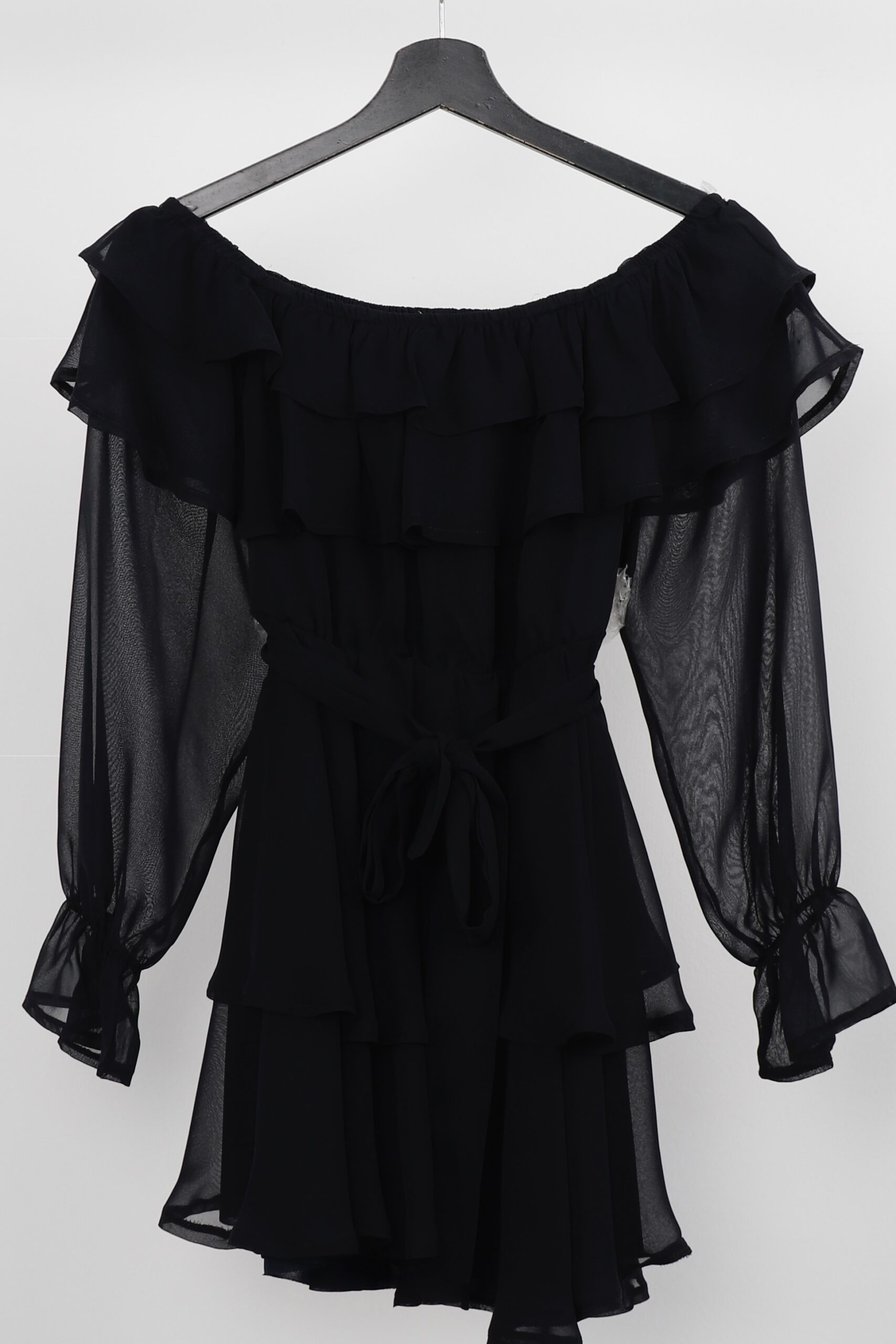Black Elegant A-Line Mini Dress With Ruffle Sleeves