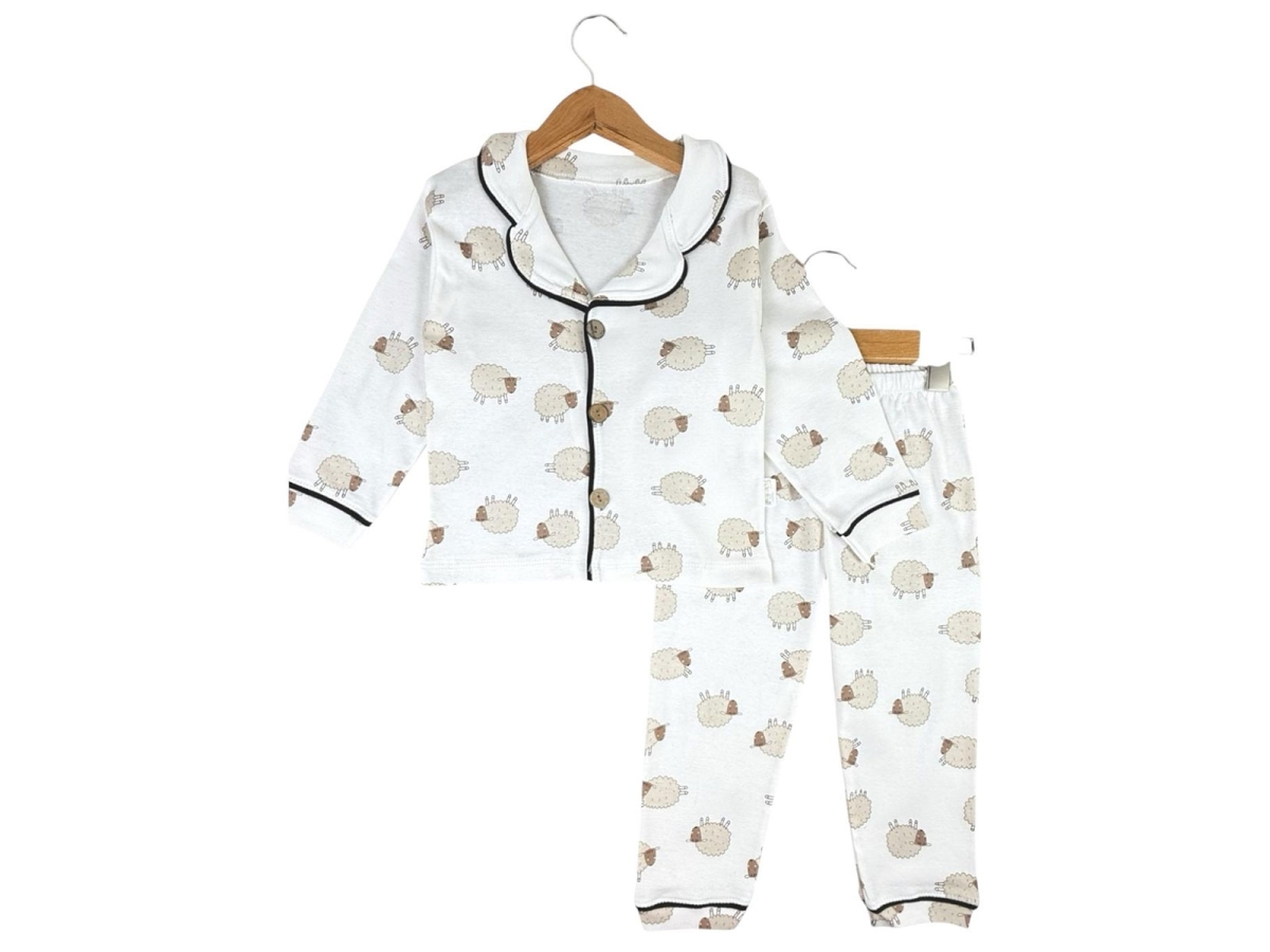 Boy's Pajamas - B1 - Sheep Patterned Collared Button-Up Unisex Pajama Set