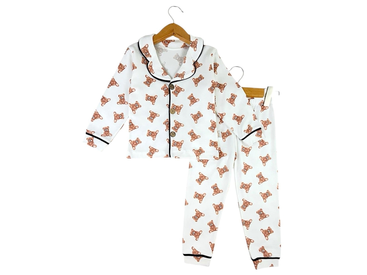 Boy's Pajamas - B1 - Teddy Bear Patterned Collared Button-Up Unisex Pajama Set