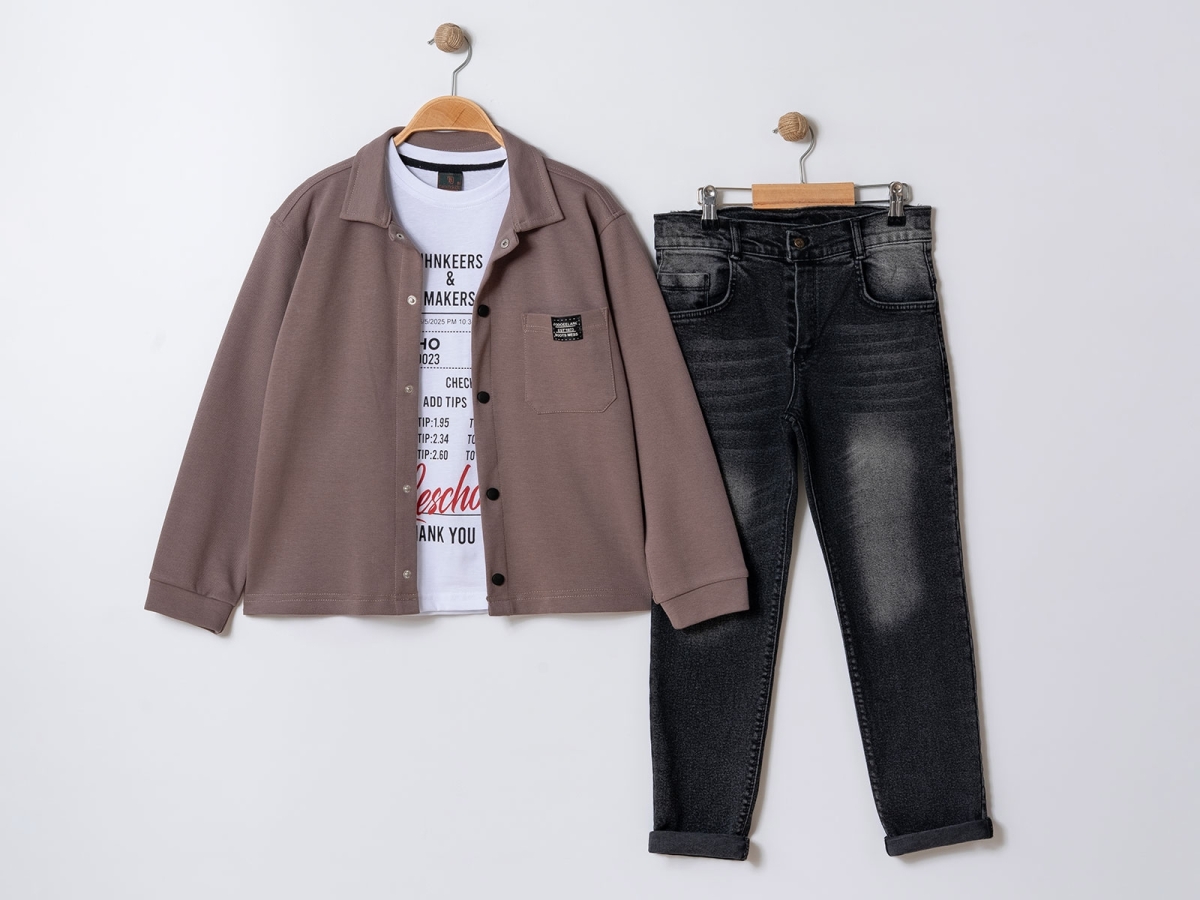 Boys' Sets - B1 - Buttoned Emblem Jacket Boys' Suit