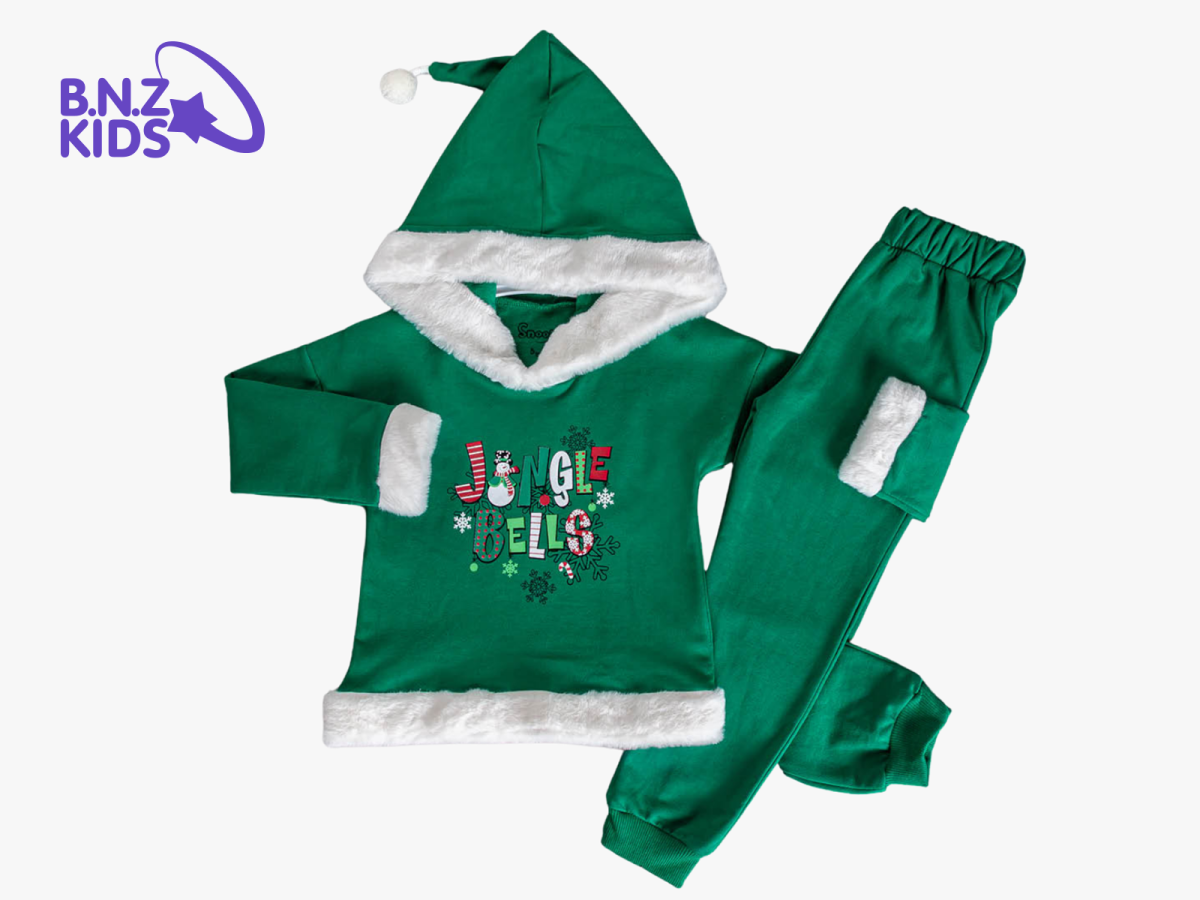 Boys' Sets - B1 - Jingle Bells Printed Boys' Hooded Christmas New Year Set Brushed 2-Thread
