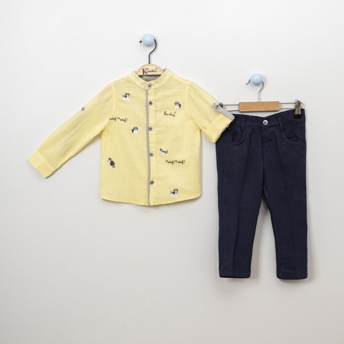 Boy's Shirt - Dog Print Trimmed Set 2-5 Years 1075-3837