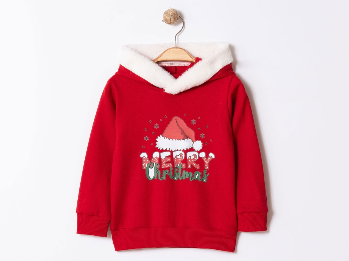 Boys' Tops - B1 - Merry Print Christmas New Year Hooded Sweatshirt 2 Strings Brushed
