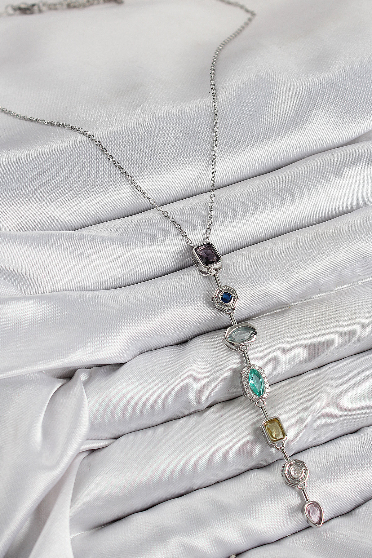 Brass Color Zircon Stone Pattern Silver Color Women Y Necklace