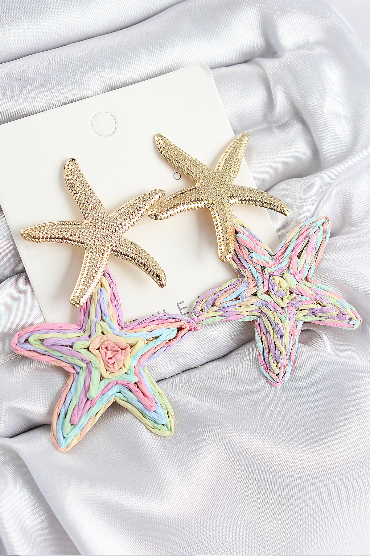 Brass Swinging Rainbow Starfish Model Gold Color Straw Earrings