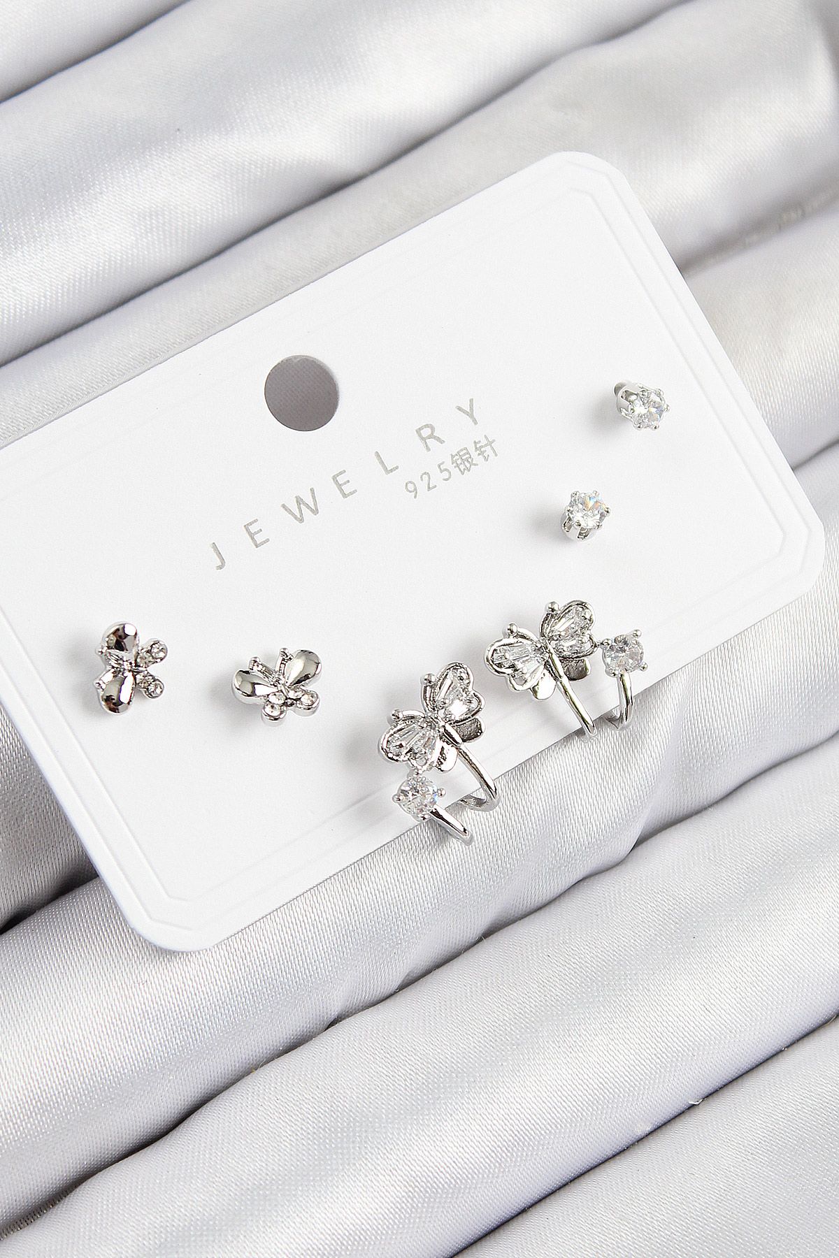 Brass Zircon Stone Butterfly Pattern Silver Color 925 Sterling Silver Stud Women Earrings Set