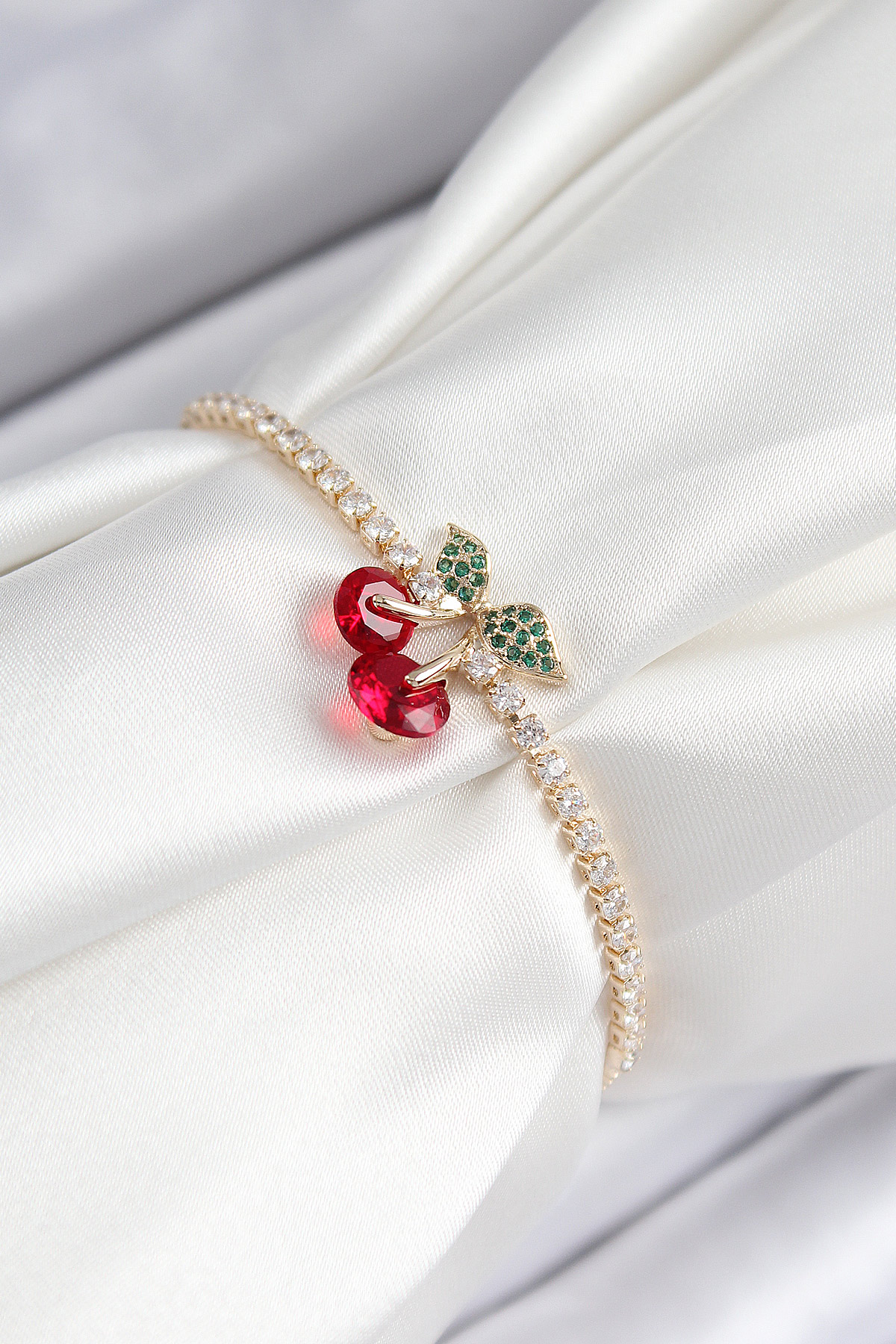 Brass Zircon Stone Cherry Model Gold Color Elevator Women Bracelet