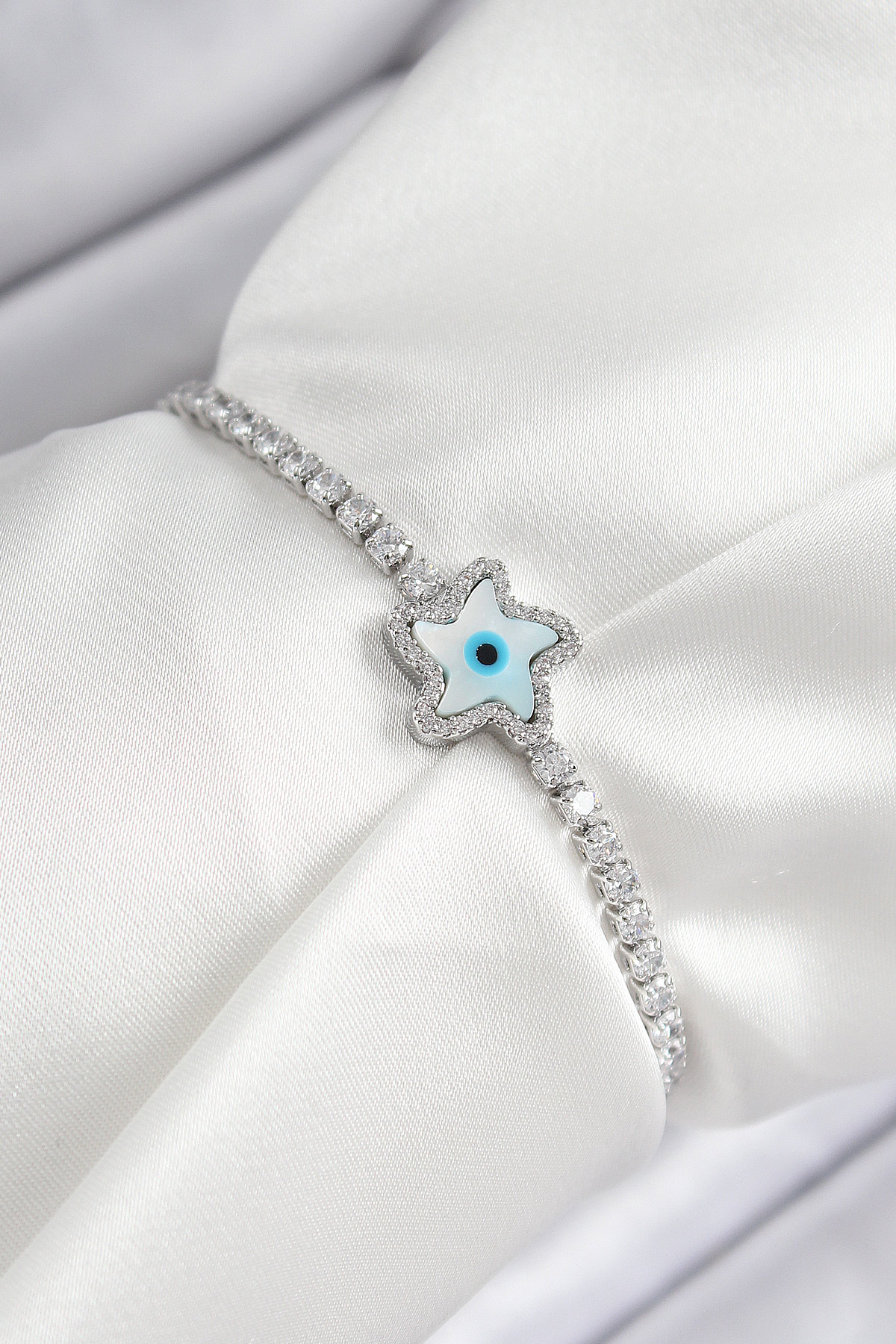Brass Zircon Stone Evil Eye Star Model Silver Color Elevator Women Bracelet