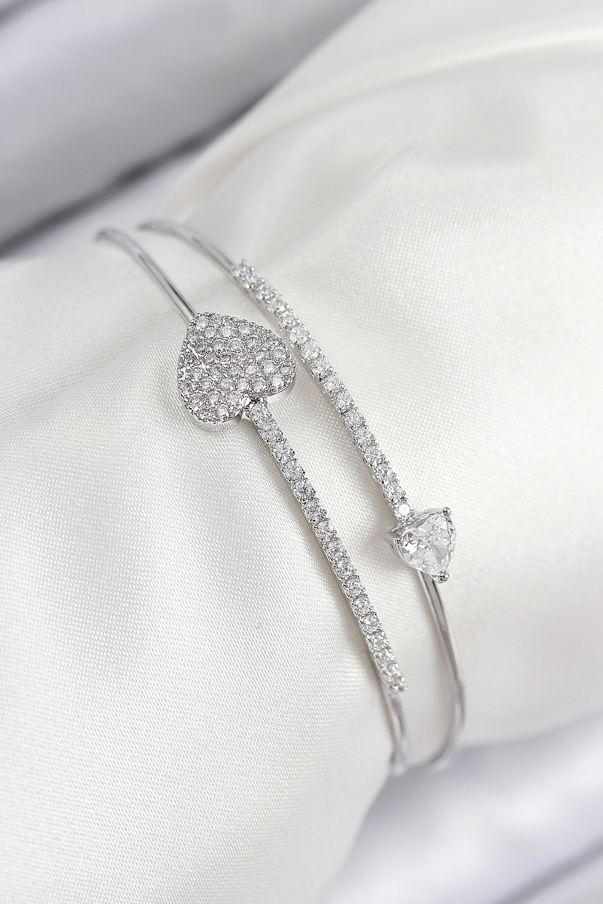 Brass Zircon Stone Heart Pattern Silver Color Women's Bracelet