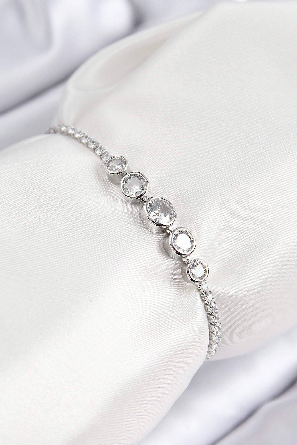 Brass Zircon Stone Inline Circle Pattern Silver Color Elevator Women Bracelet